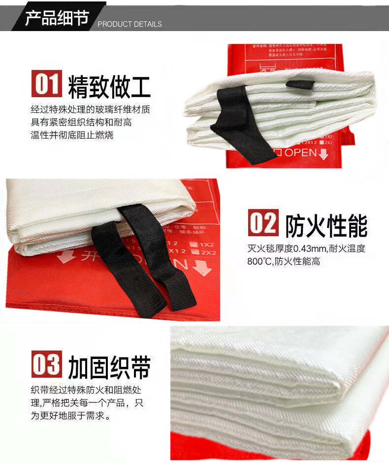Fire blanket fire-fighting certified fire blanket high temperature resistant silicone fiberglass fire safety blanket home red