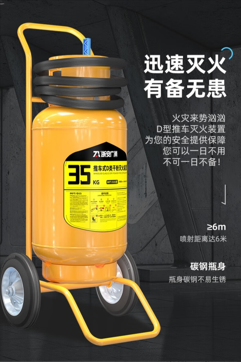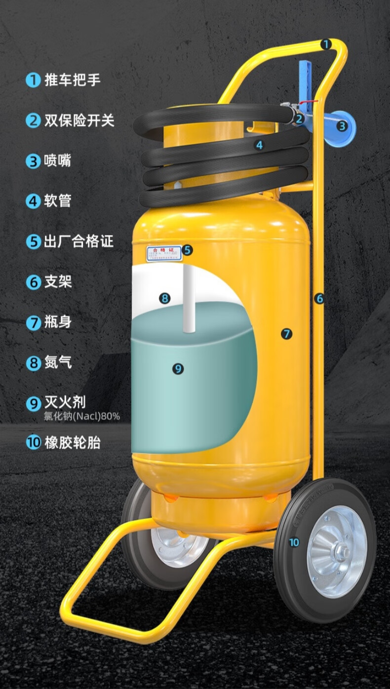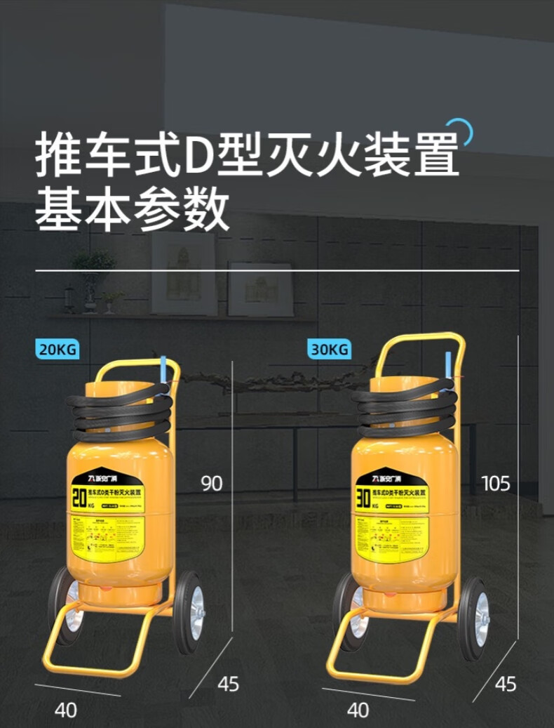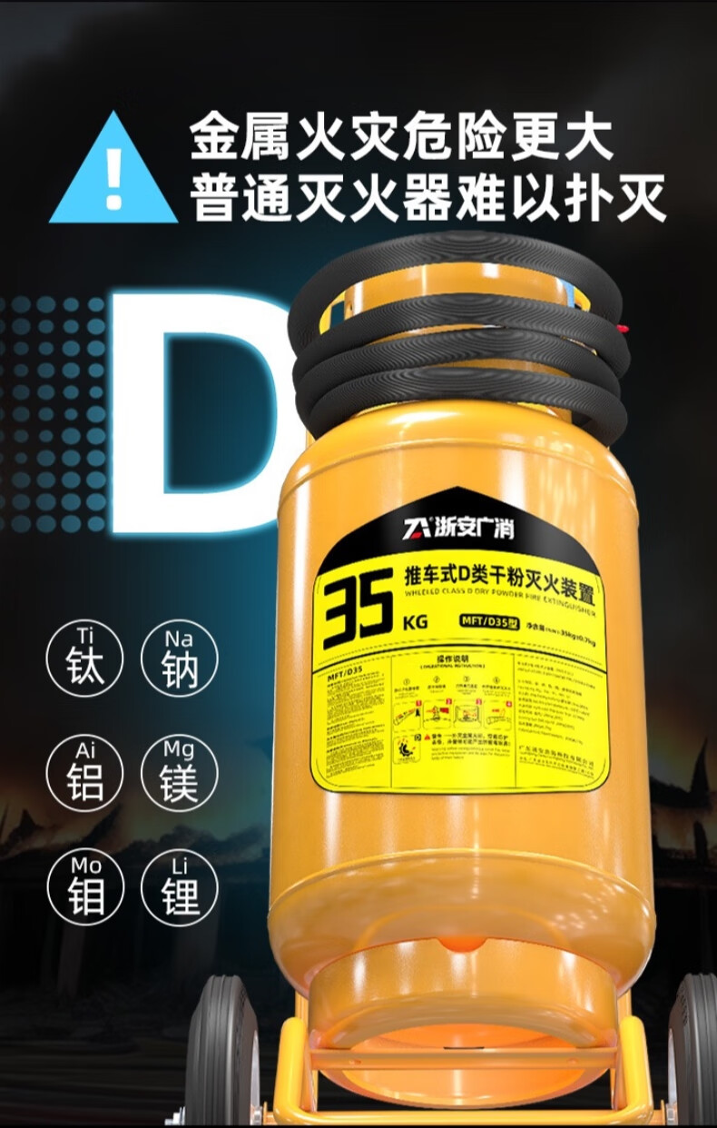 Trolley-type Class D metal dry powder fire extinguisher 20kg specially designed to extinguish lithium battery smelting plant fire equipment wholesale factory new date Yellow 30KG Trolley-type Class D fire extinguisher