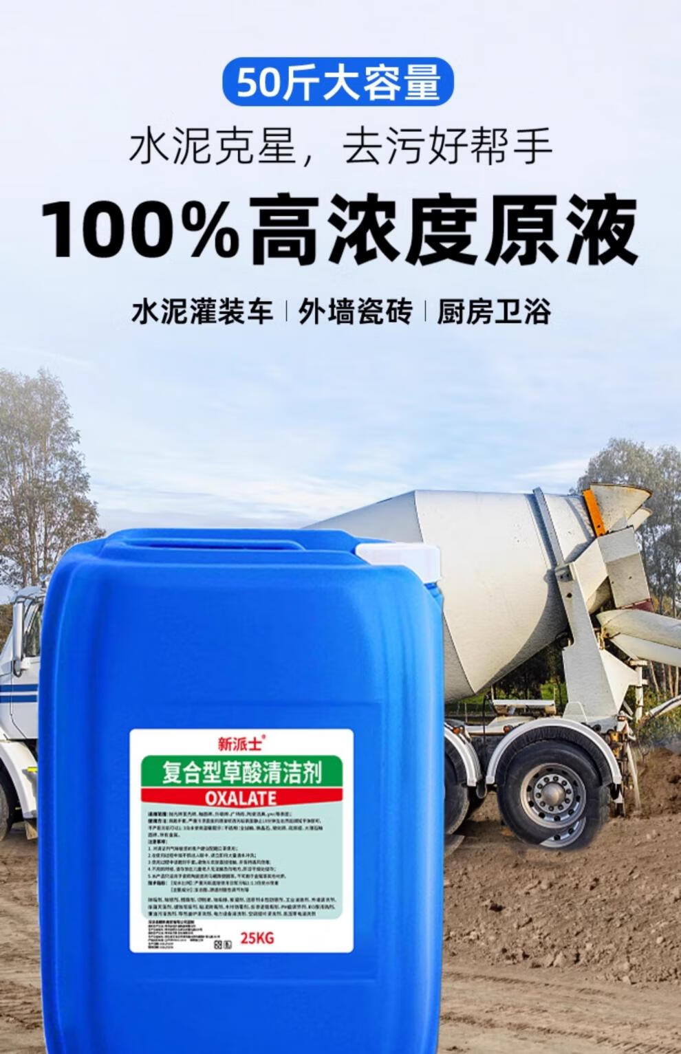 Oxalic acid cleaner, ceramic tile toilet powerful descaler, exterior wall back-alkali high concentration solution, industrial cement cleaner