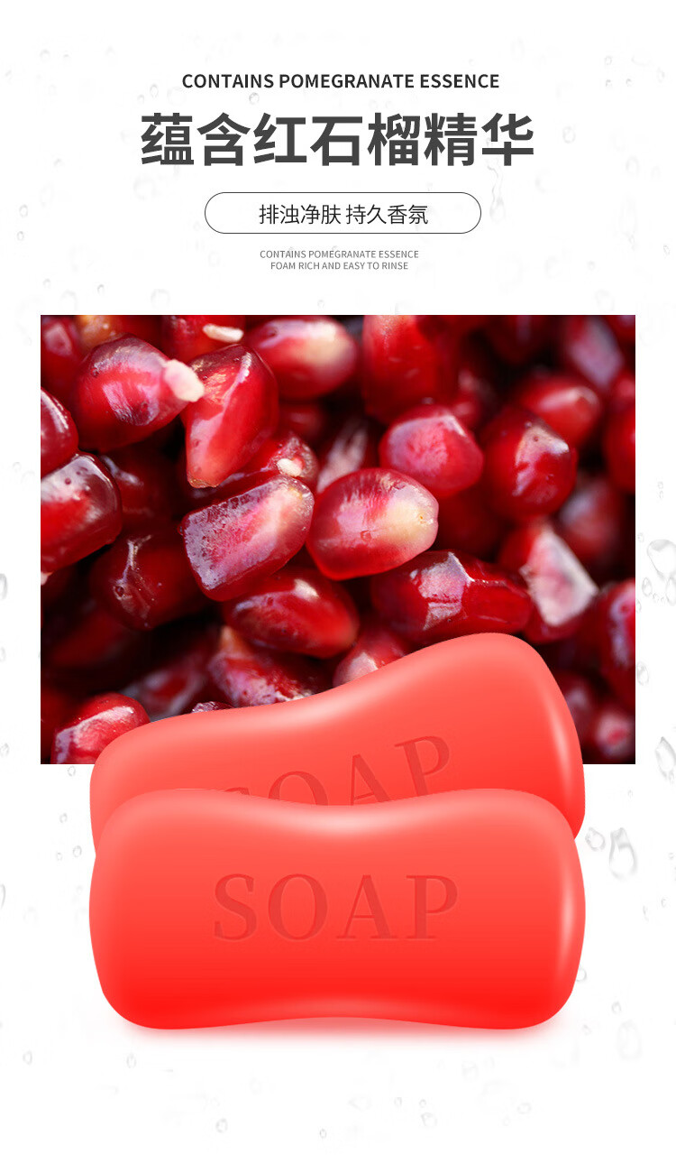 Soap for face washing, bathing and detoxification. Red pomegranate soap, scented and long-lasting sewage soap, 90g. 1 piece of red pomegranate soap. Random packaging.
