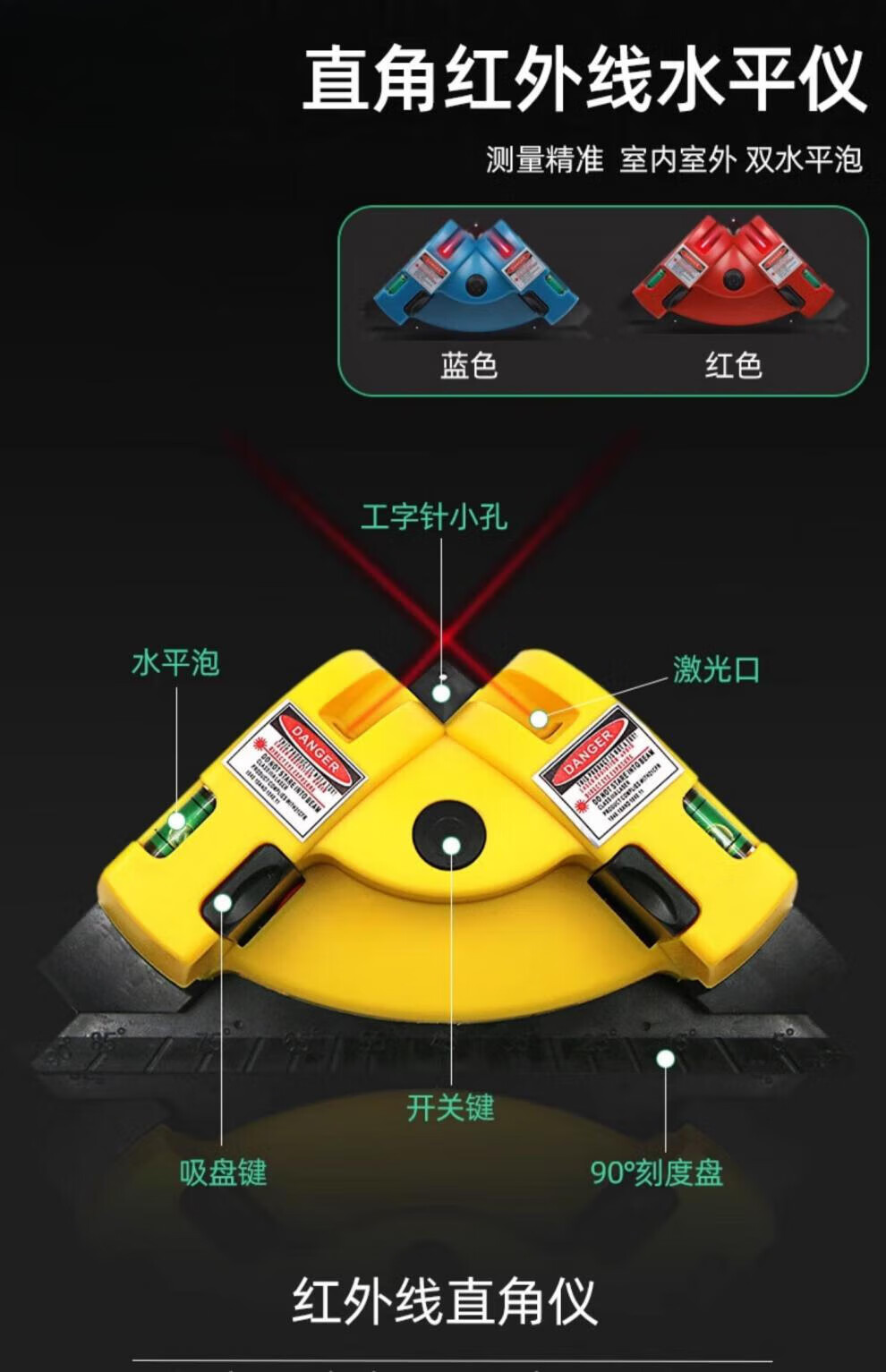 Morning Ax Electronic Laser Right Angle Level 90 Degree Ground Wire, Ink Fountain, High Precision Automatic Wiring, Upgraded Straight Angle Meter (+ Battery)