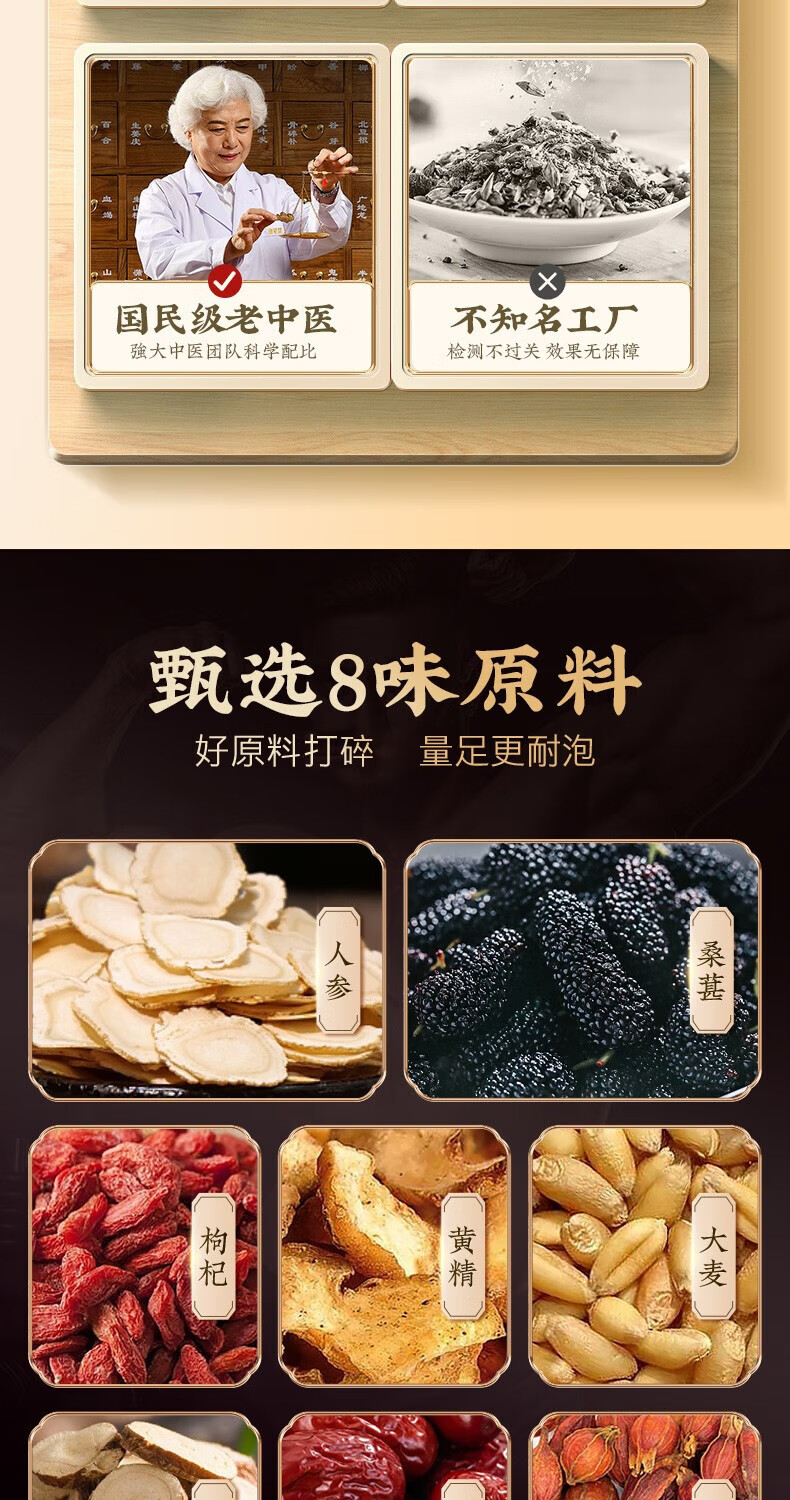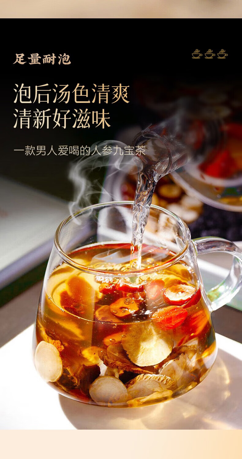 Beijing Tongrentang Ginseng, Wolfberry and Nine Treasures Health Tea, Huangjing, Wolfberry and Mulberries, Kidney-tonifying Tea, Black Wolfberry and Red Dates, Impotence Premature Ejaculation Sensitive Tea. Three boxes of 45 cans of canned tea. Real ingredients and do not break. Use aphrodisiacs to achieve long-lasting erection without ejaculation. Delayed hardening, enlargement and thickening.