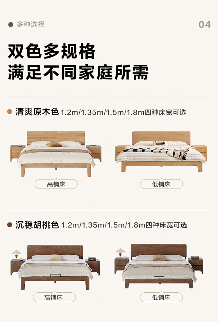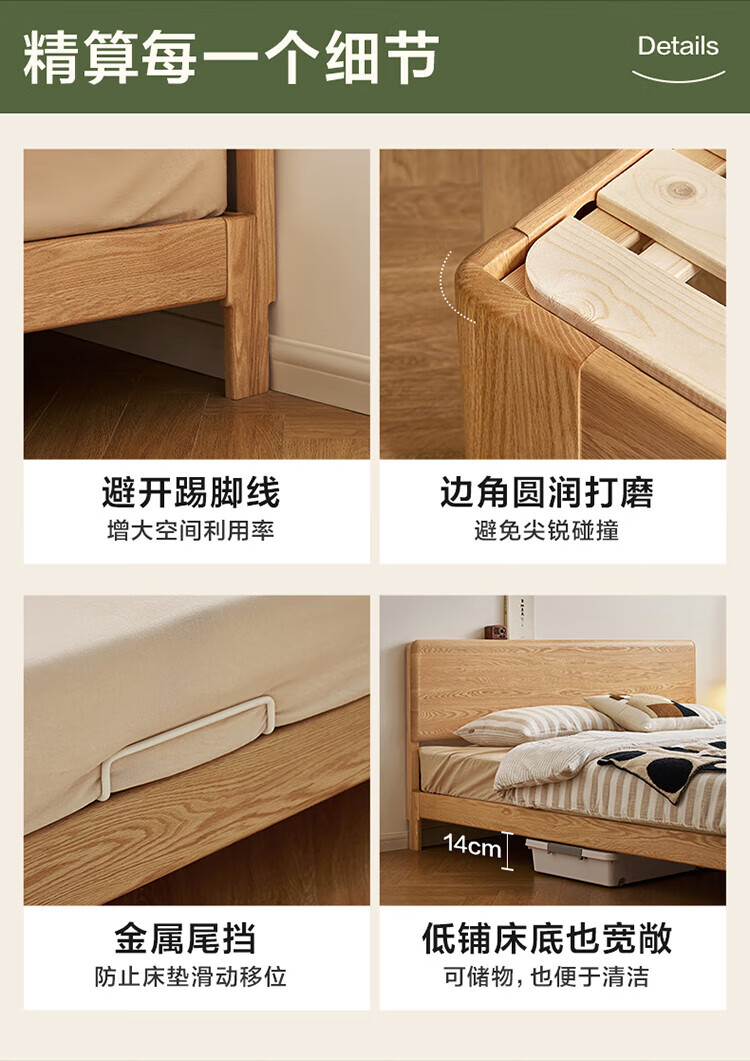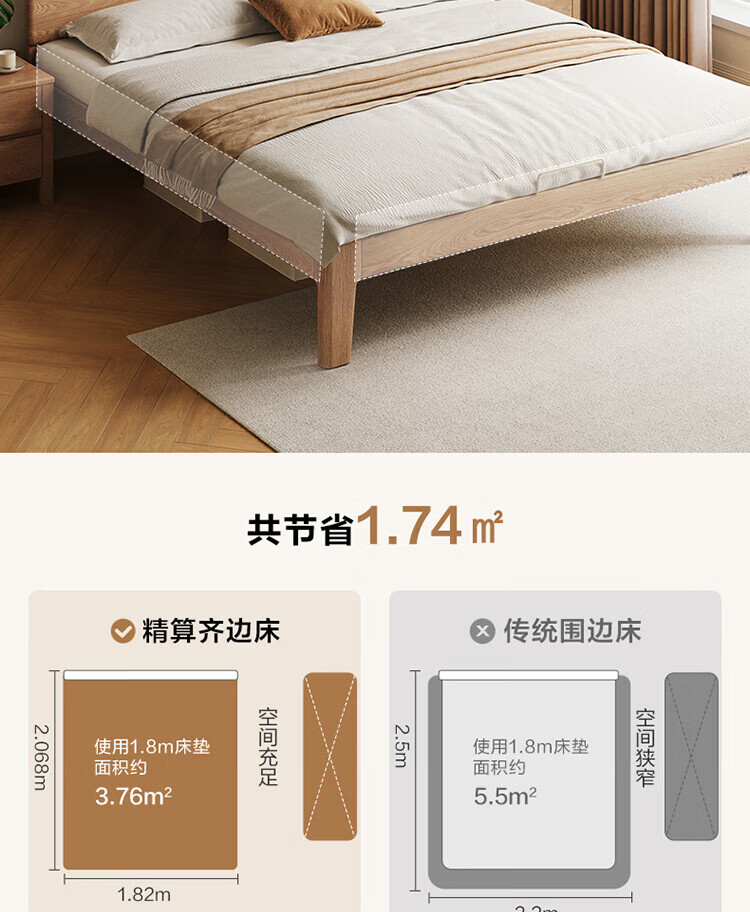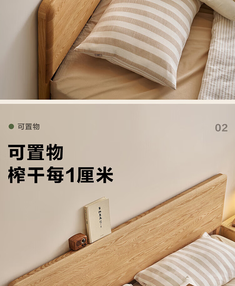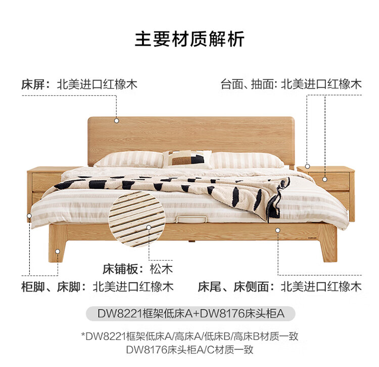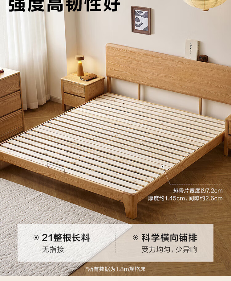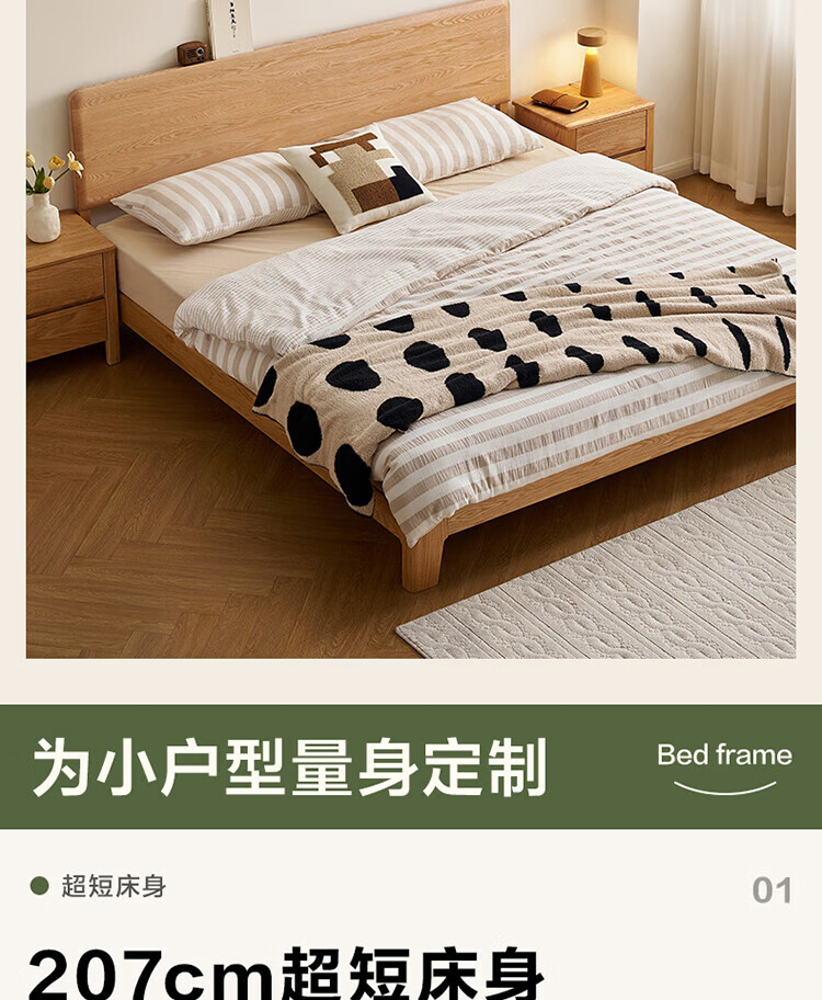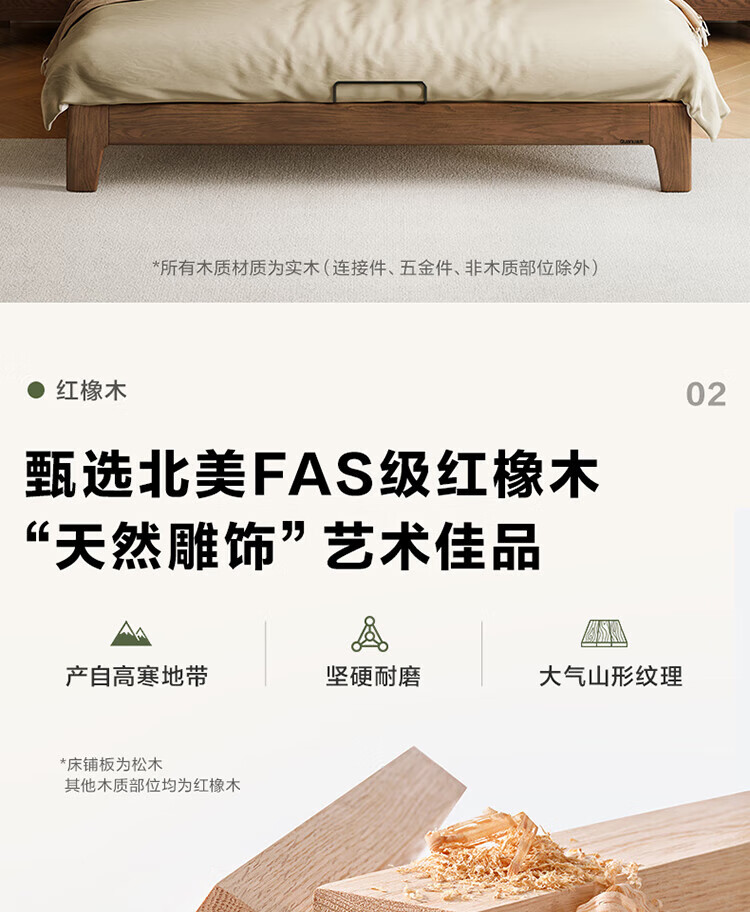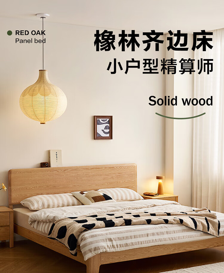 Quanyou Home Log Style Red Oak Solid Wood Bed 1.8mx2m Modern Simple Small Apartment Double Master Bedroom Large Bed Log Color | Red Oak | Low Bunk Single Bed 1.8m