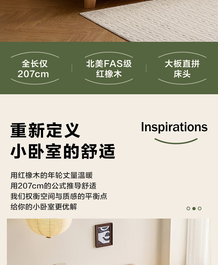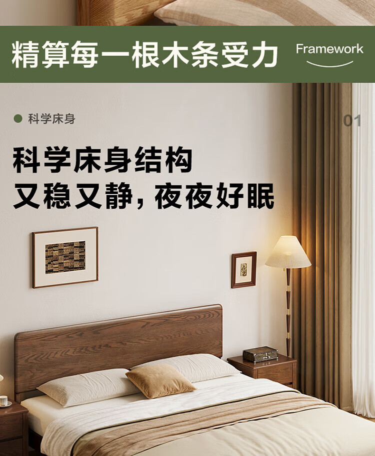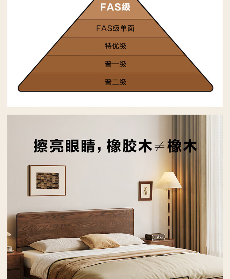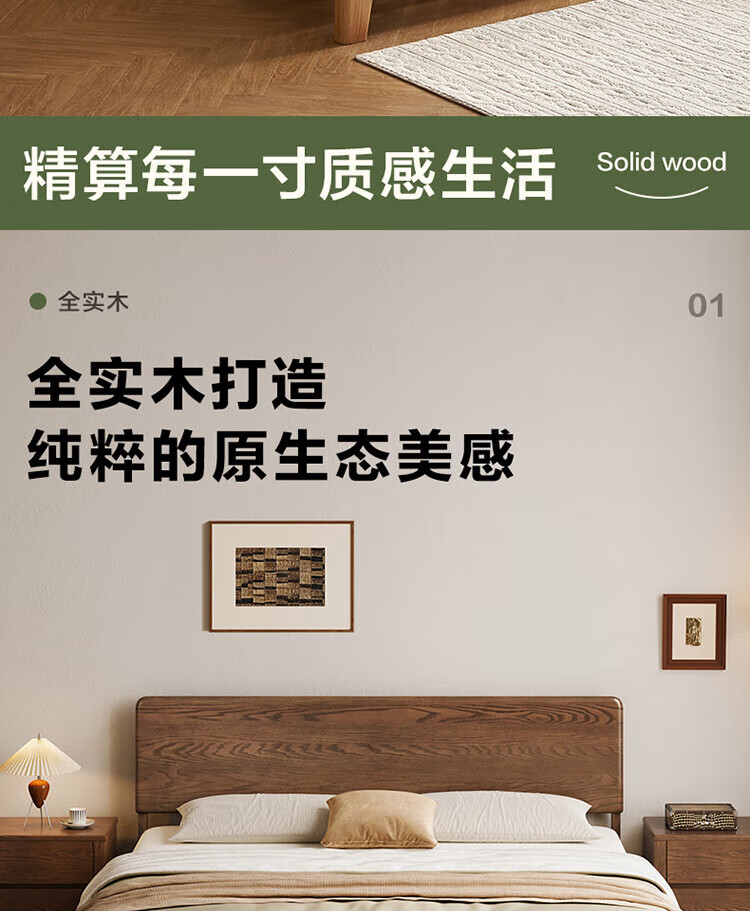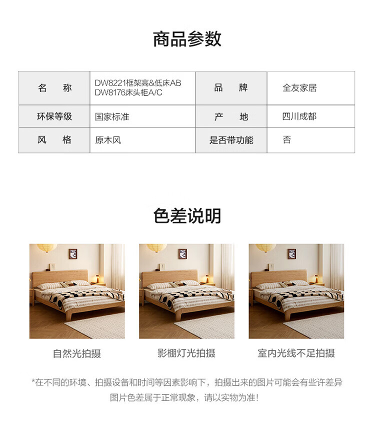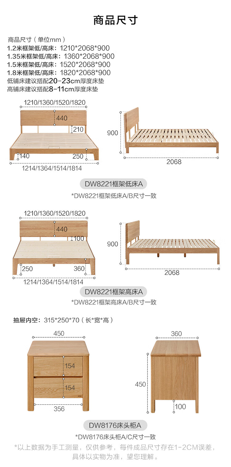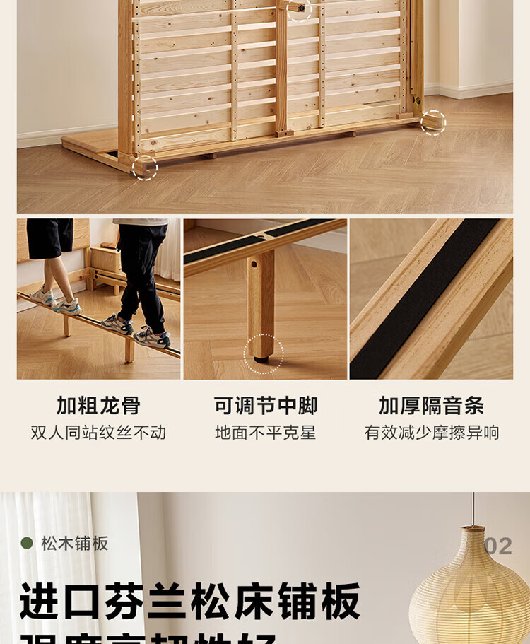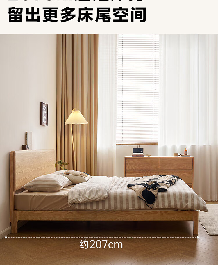 Quanyou Home Log Style Red Oak Solid Wood Bed 1.8mx2m Modern Simple Small Apartment Double Master Bedroom Large Bed Log Color | Red Oak | Low Bunk Single Bed 1.8m
