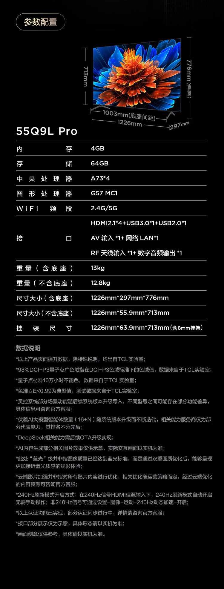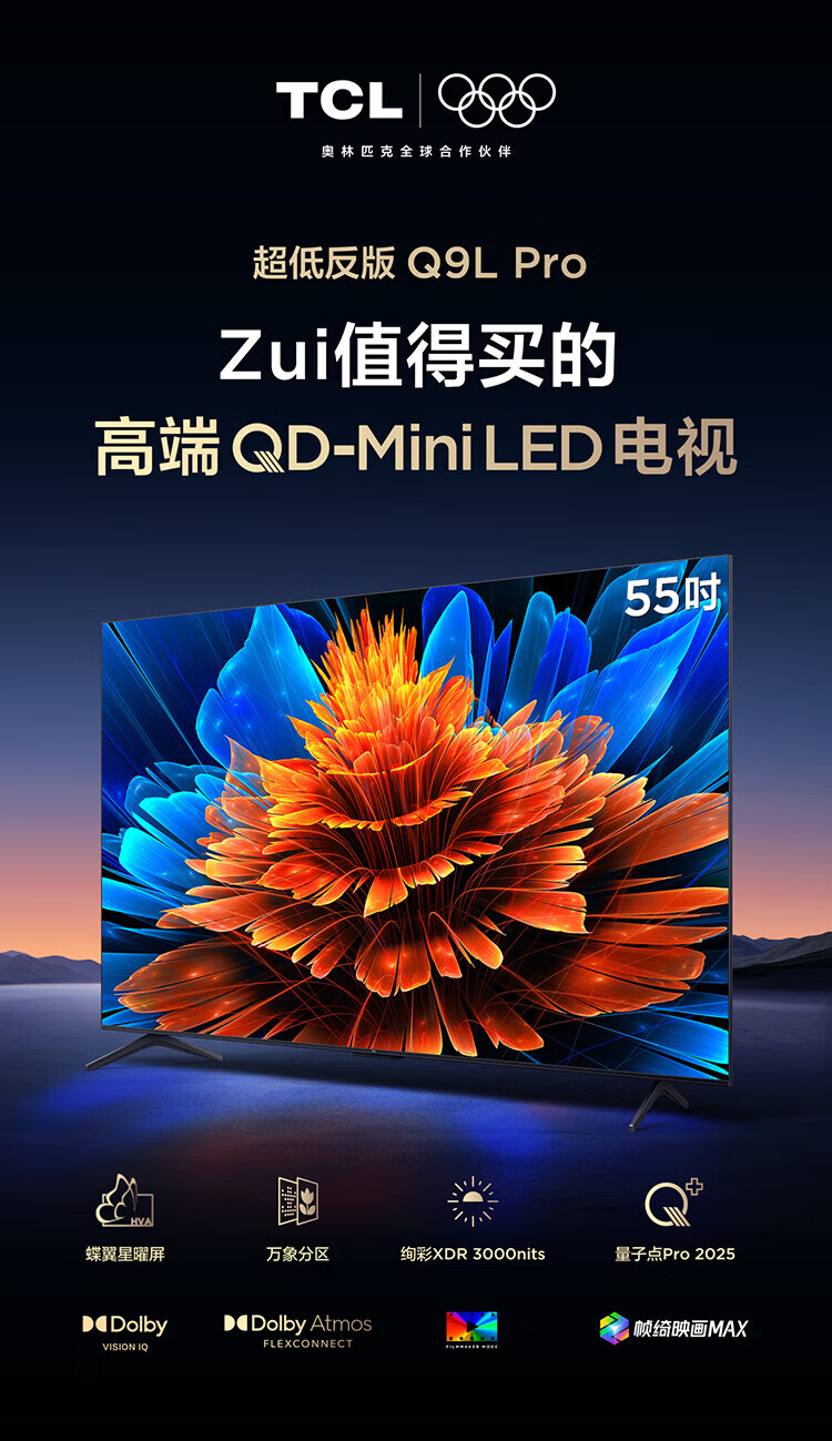 TCL TV 55Q9L Pro TV 55-inch QD-Mini LED Butterfly Wing Star Screen Vientiane Partition Colorful XDR3000nits Ultra-thin Smart Screen 55-inch Flagship New Product Consult customer service to enjoy internal price