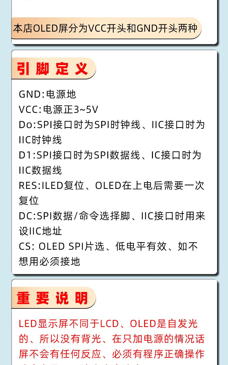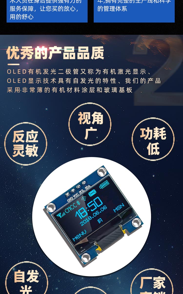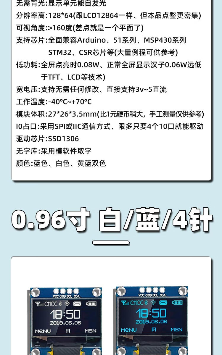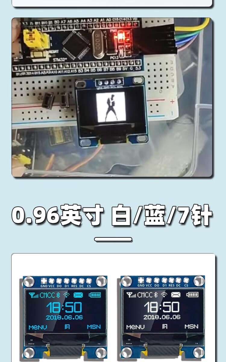 Dengshitang 0.96-inch OLED display SSD1306/1315 driver LCD screen 4/7-pin IIC/SPI white yellow blue OLED display module 0.96-inch OLED display module Yellow blue 0.96-inch 1315 driver 7-pin GND Solder the pin header