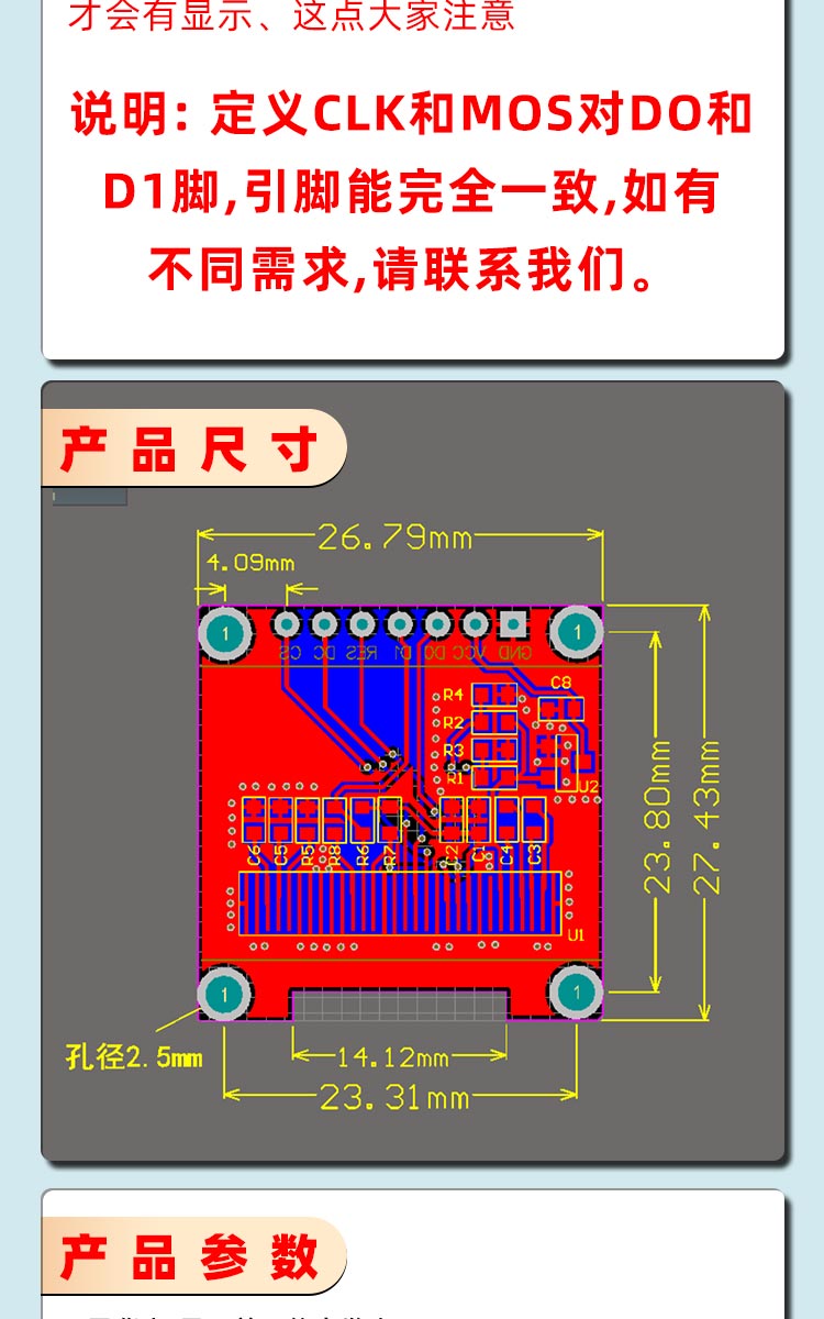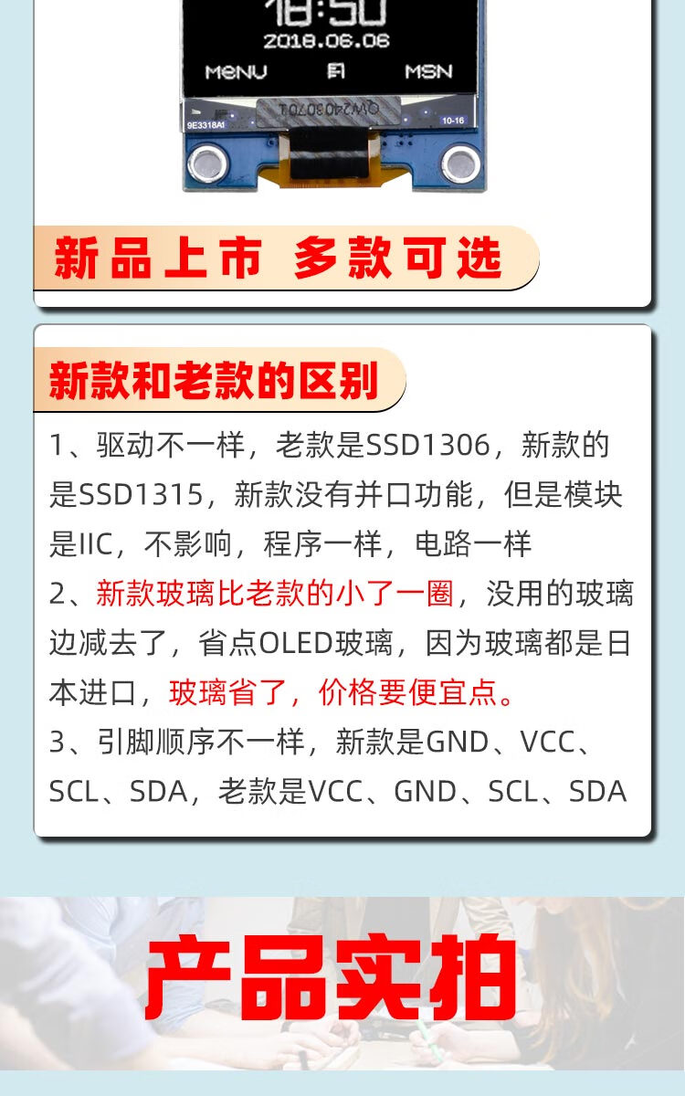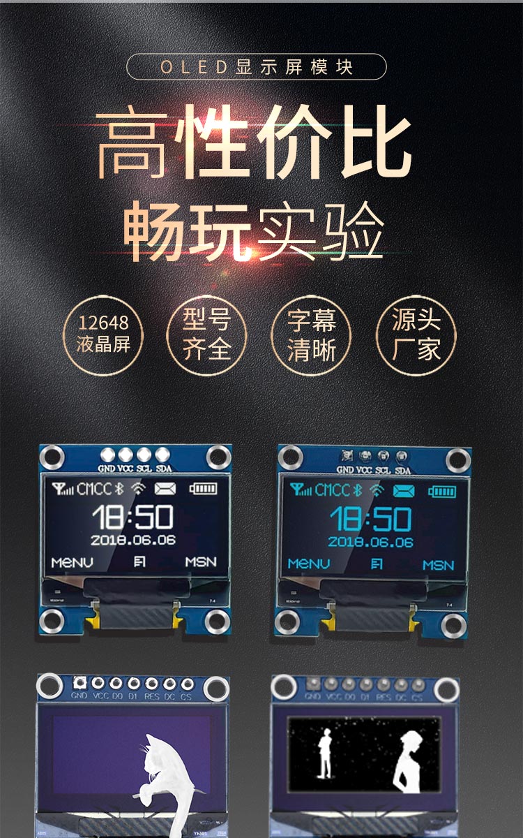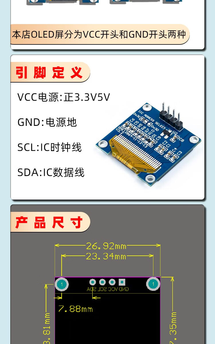 Dengshitang 0.96-inch OLED display SSD1306/1315 driver LCD screen 4/7-pin IIC/SPI white yellow blue OLED display module 0.96-inch OLED display module Yellow blue 0.96-inch 1315 driver 7-pin GND Solder the pin header