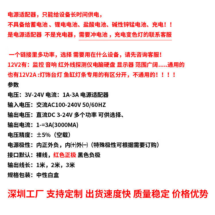 3V4.5V5V6V7.5V9V12V15V24V1A2A power adapter charging cable tail peeled and tinned bare wire 24V1A (2 meters) bare wire