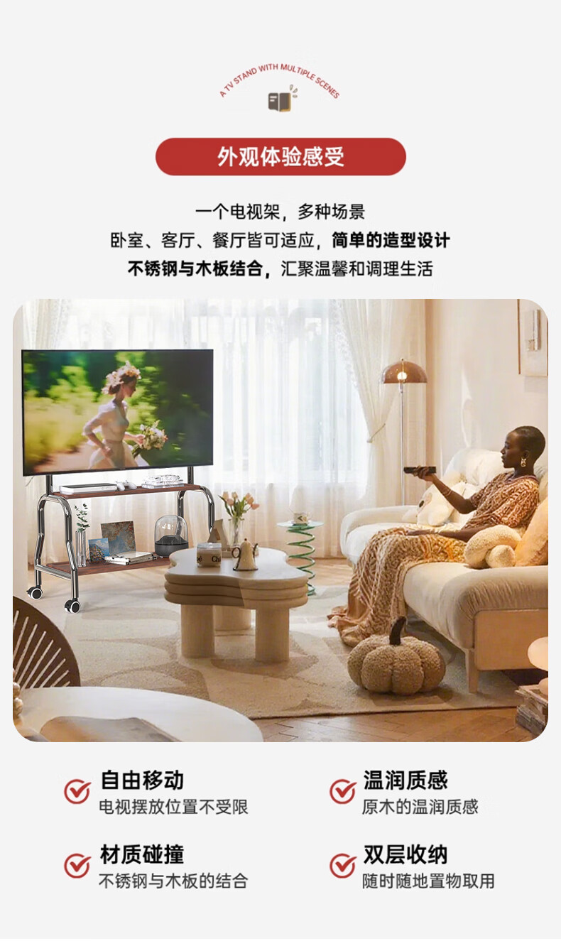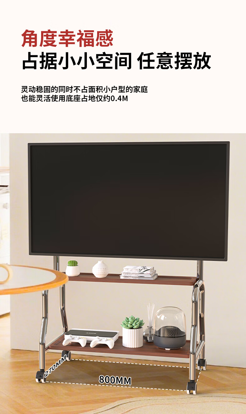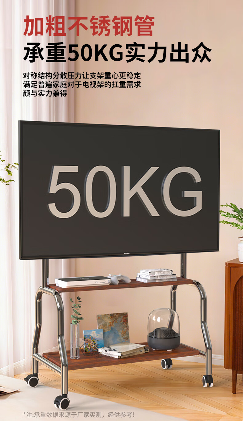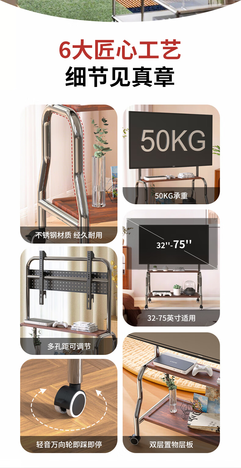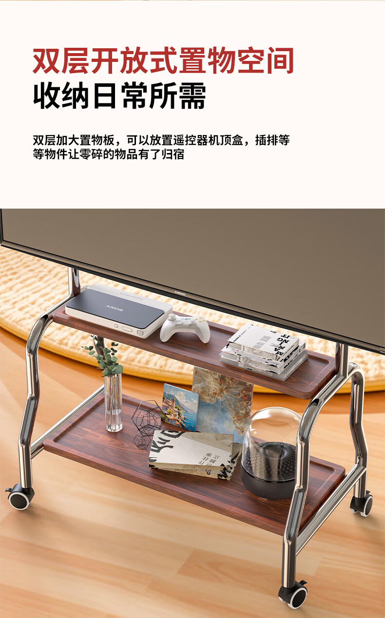 Wanjianiu mobile TV stand 32-75 inches with wheels movable floor-standing TV stand Xiaomi Hisense all-in-one stainless steel floor-standing mobile TV stand double-storage tray 32-75 inches high-quality stainless steel