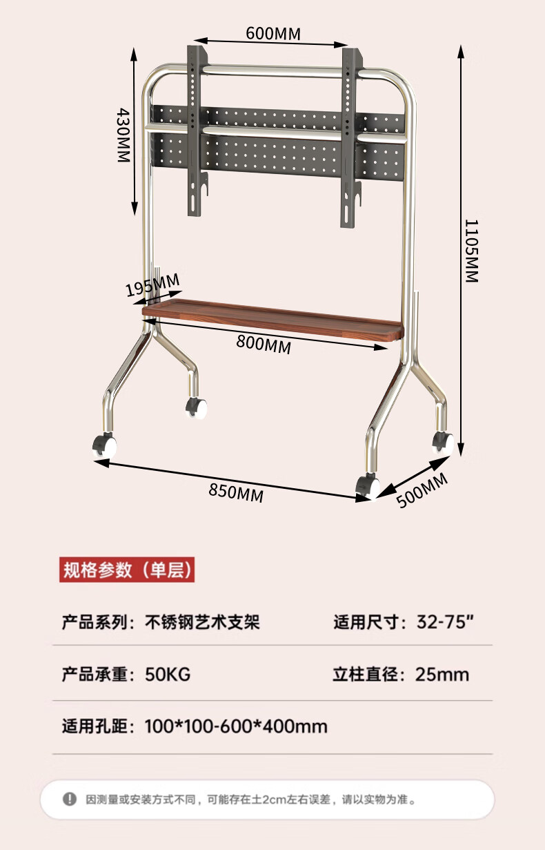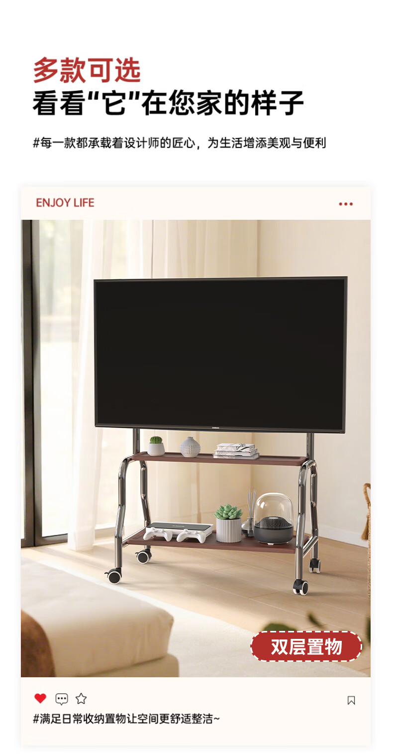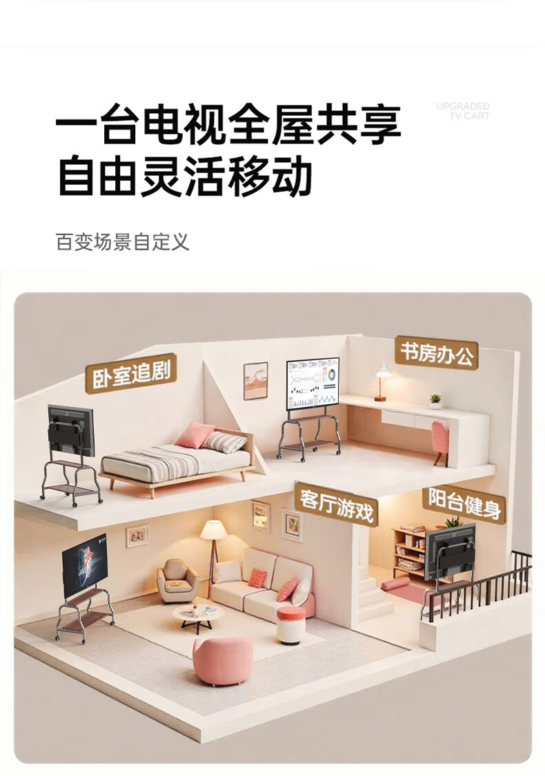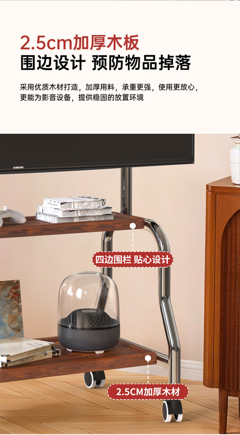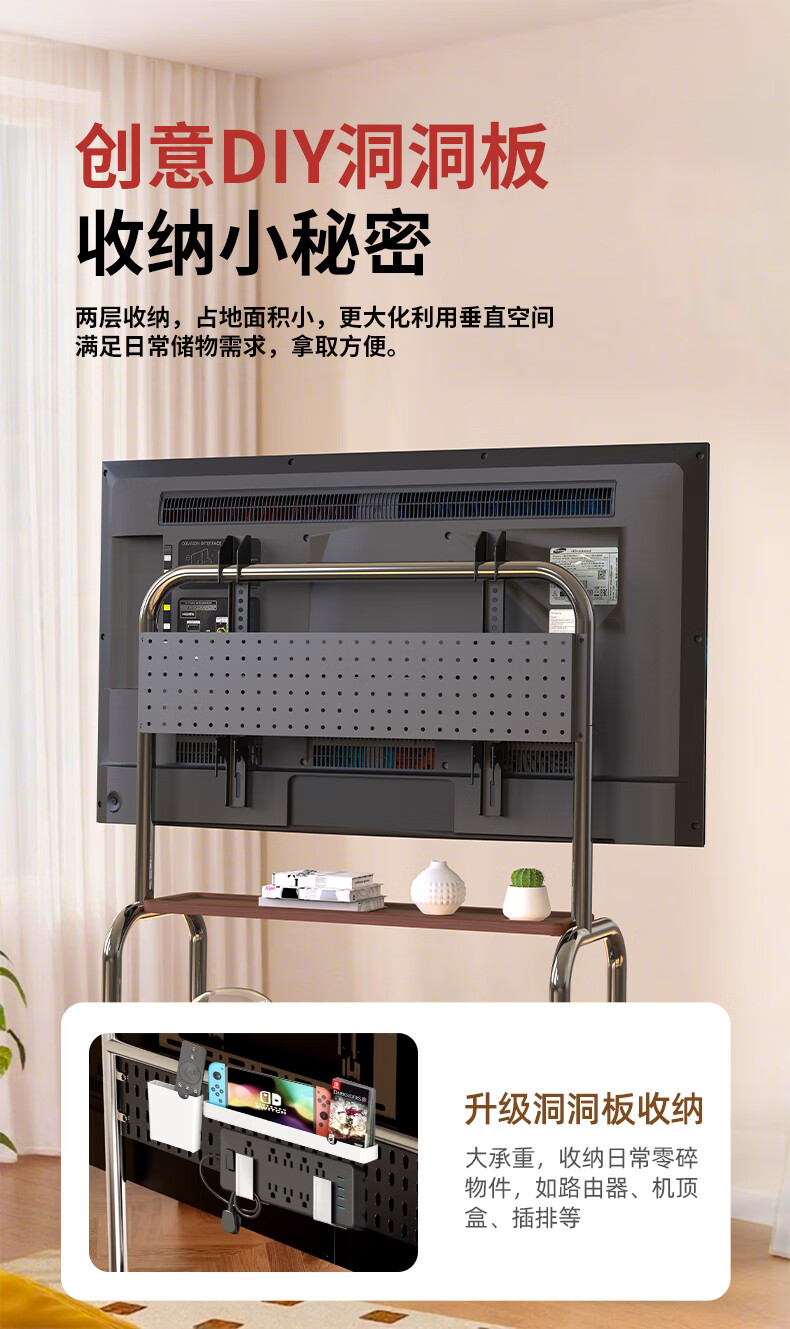 Wanjianiu mobile TV stand 32-75 inches with wheels movable floor-standing TV stand Xiaomi Hisense all-in-one stainless steel floor-standing mobile TV stand double-storage tray 32-75 inches high-quality stainless steel