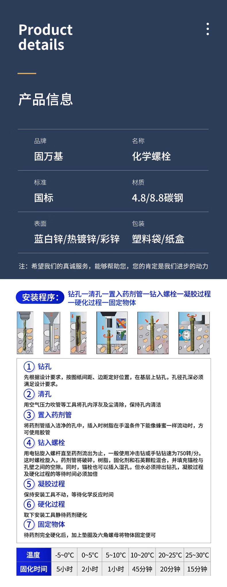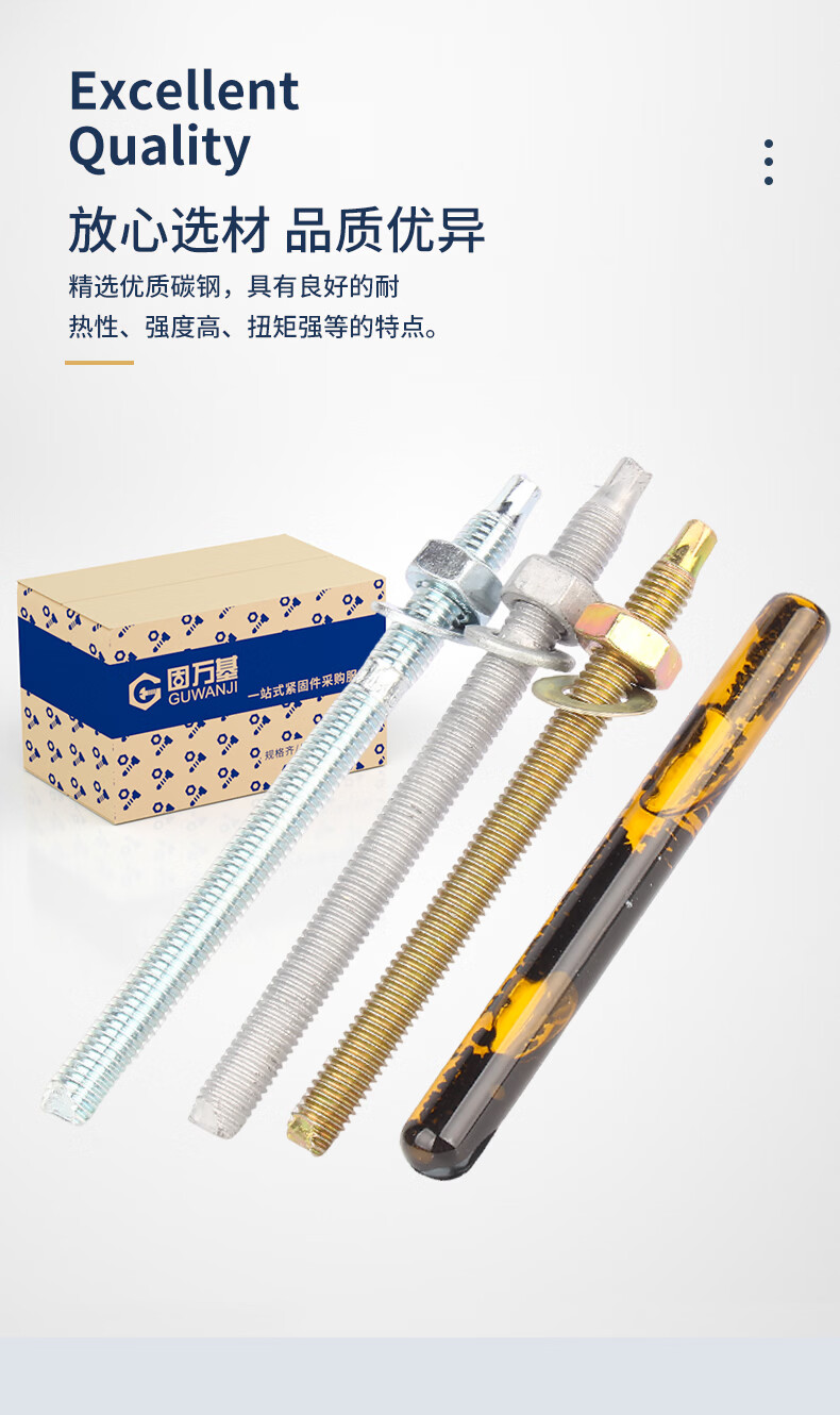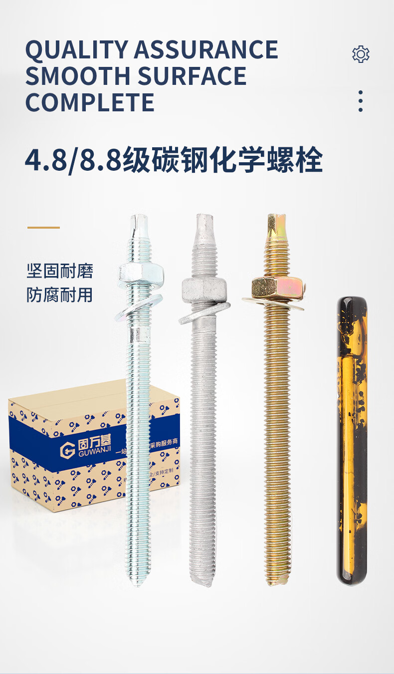 Guwanji boxed 4.8 chemical expansion bolt high strength 8.8 grade galvanized extended chemical anchor containing agent M8-M30 4.8 grade galvanized M16x350 20 sets