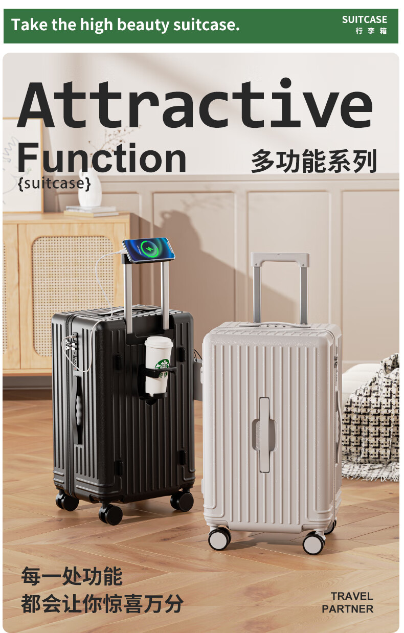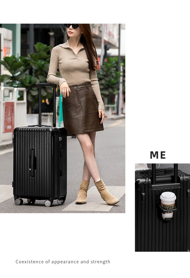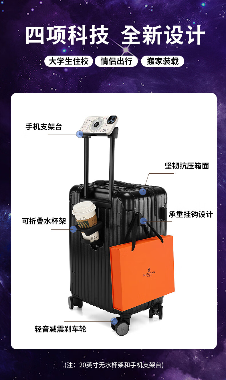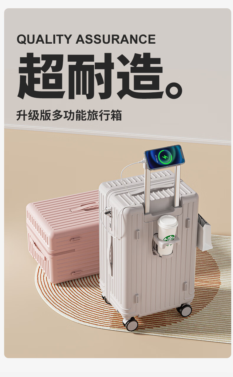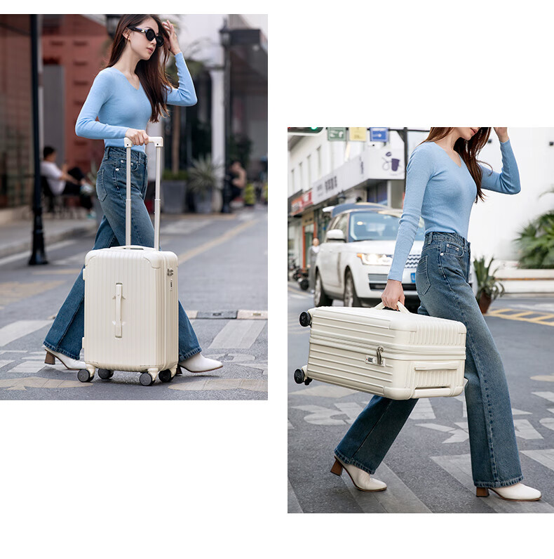 Scarecrow suitcase for men and women, universal wheel trolley case, password box, large-capacity suitcase, business trip boarding leather suitcase, checked box, C style oatmeal gray 20 inches (boarding suitcase)