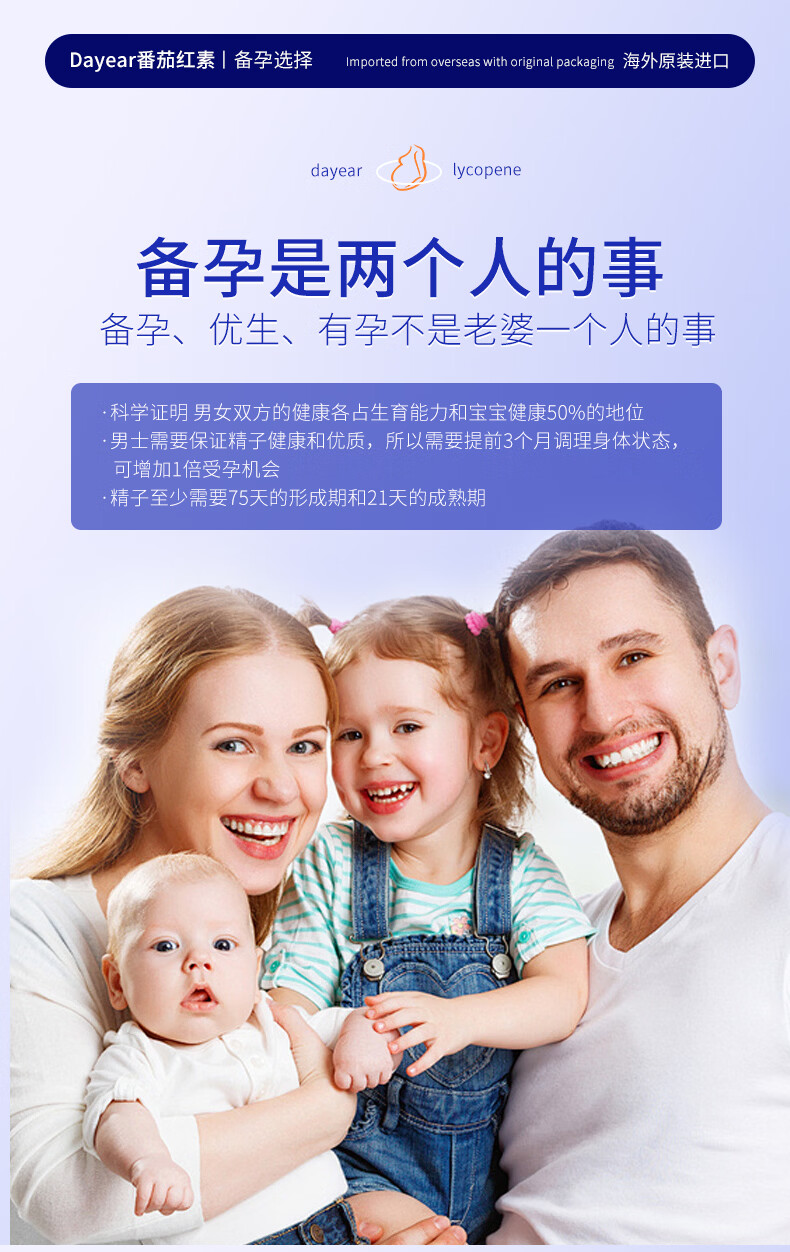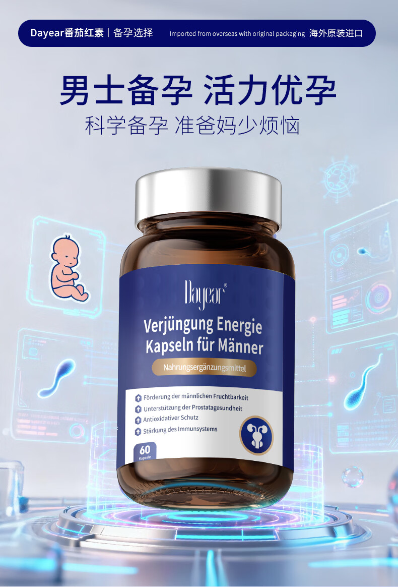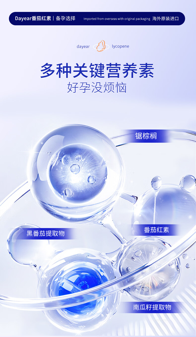 Dayear Lycopene Capsules Men's Y Active Quality Poor Health Care Alkaline Pregnancy Conditioning Acid-Alkaline Physique Overseas Genuine One Bottle Trial Pack Daily Supplement Multi-effect Synergy