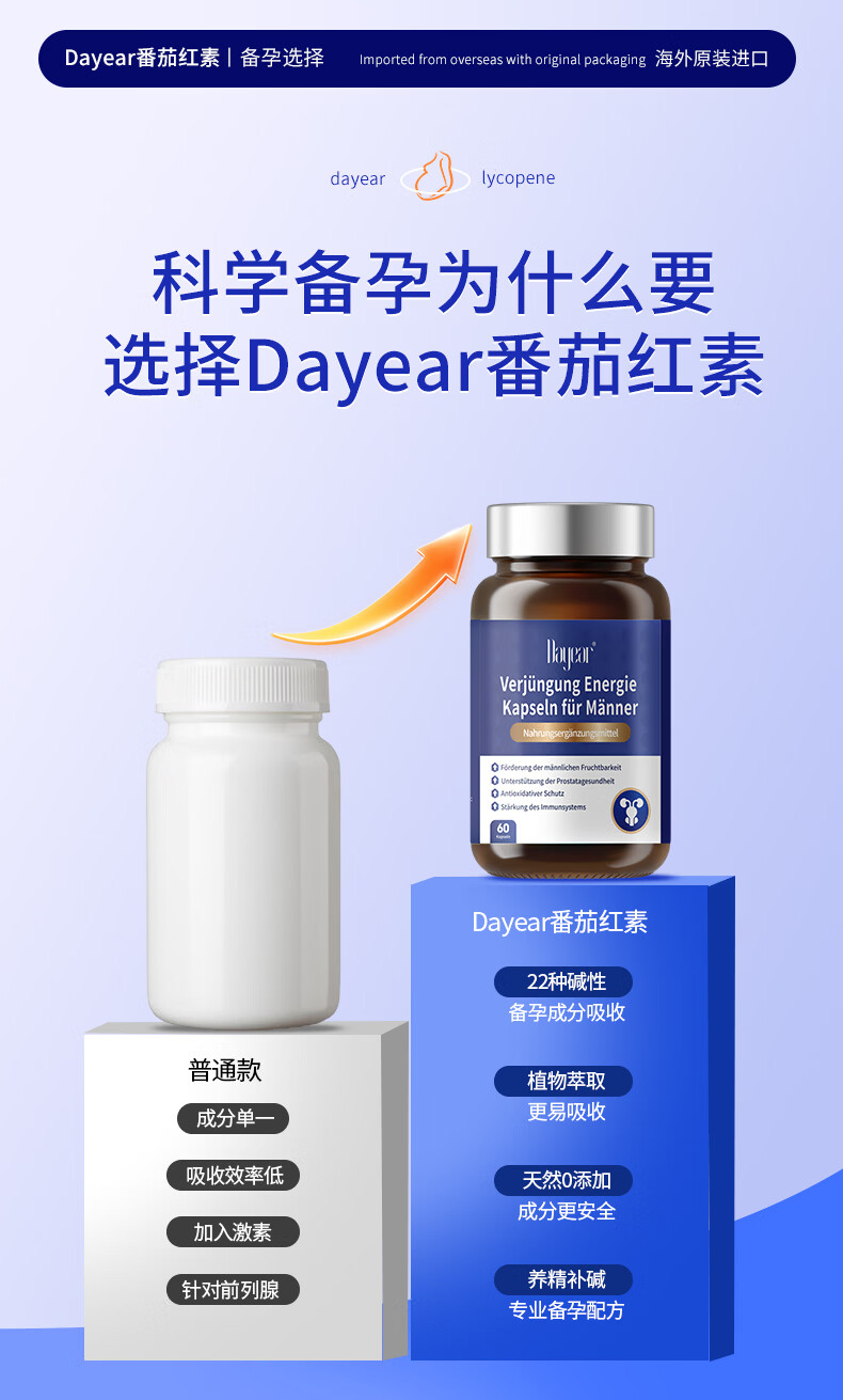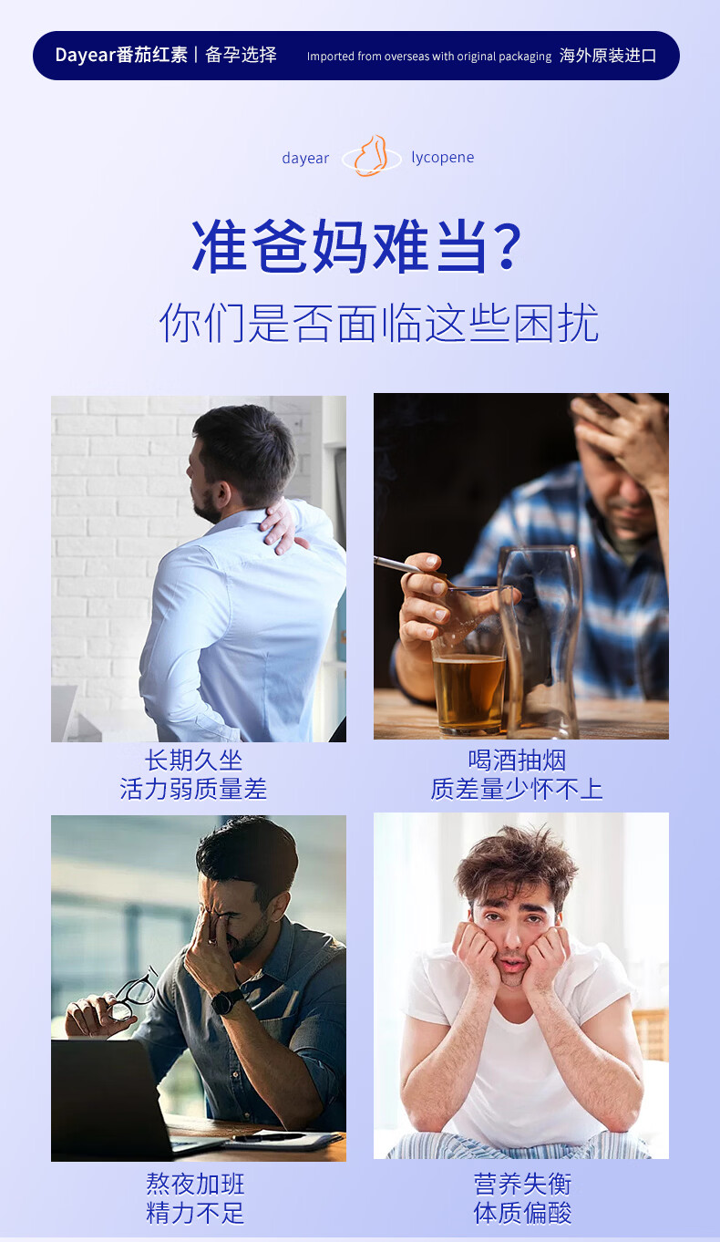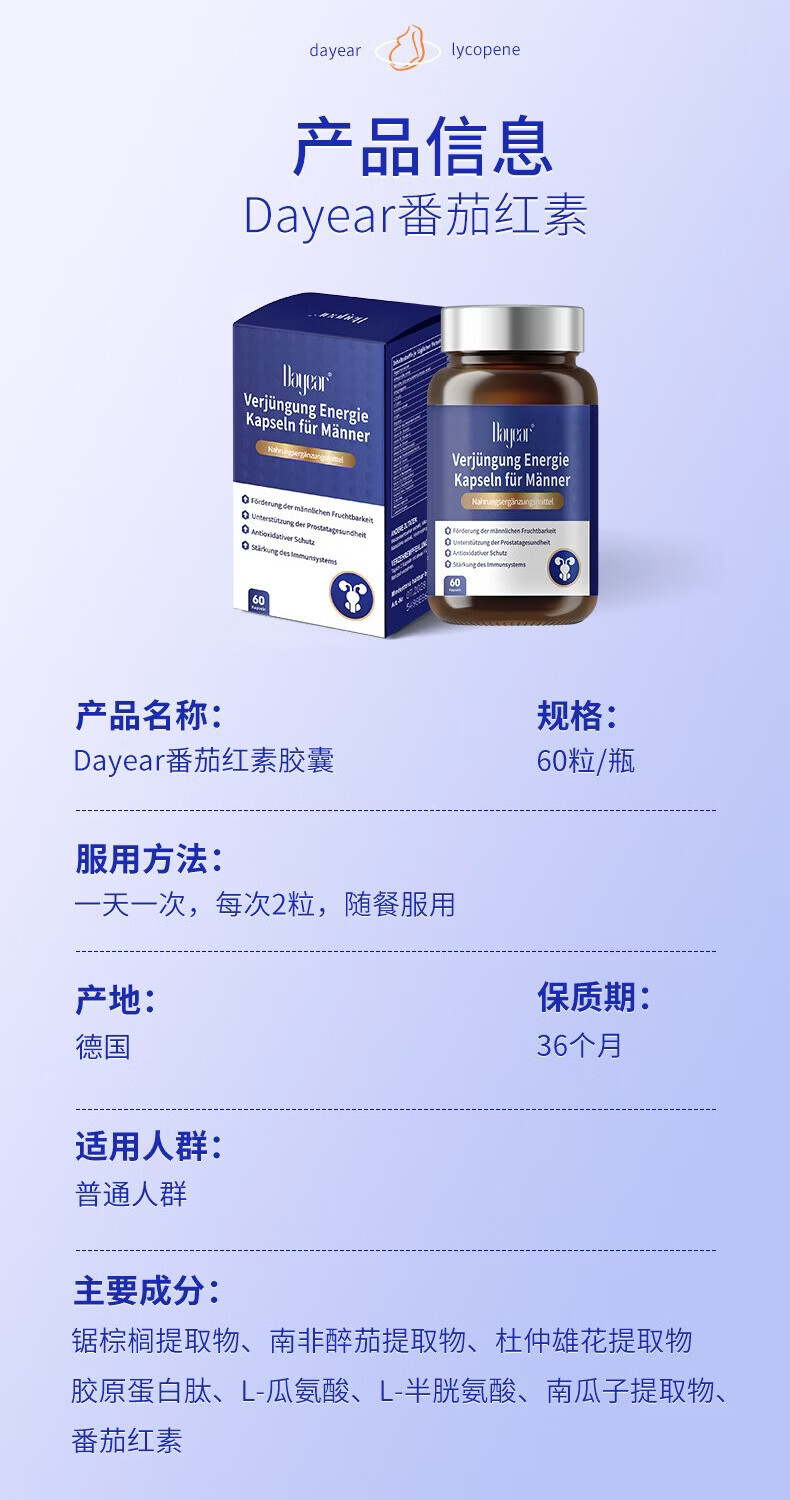 Dayear Lycopene Capsules Men's Y Active Quality Poor Health Care Alkaline Pregnancy Conditioning Acid-Alkaline Physique Overseas Genuine One Bottle Trial Pack Daily Supplement Multi-effect Synergy