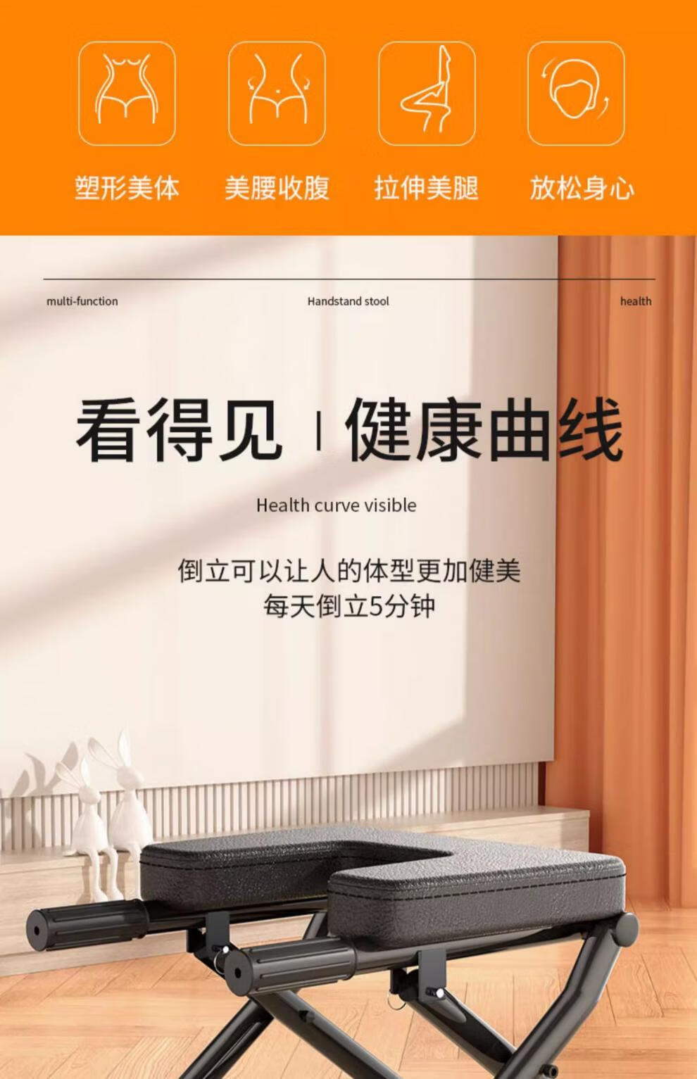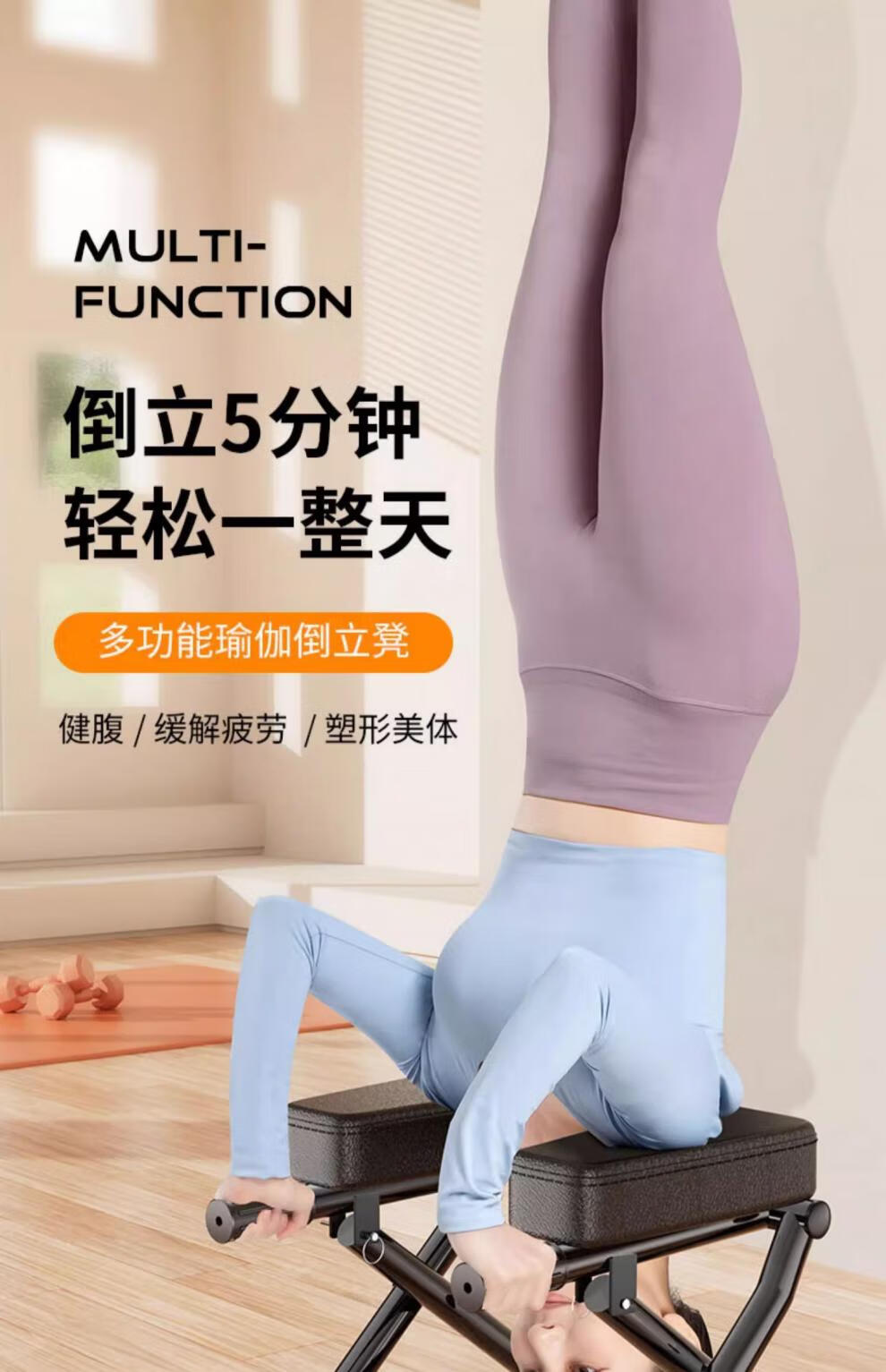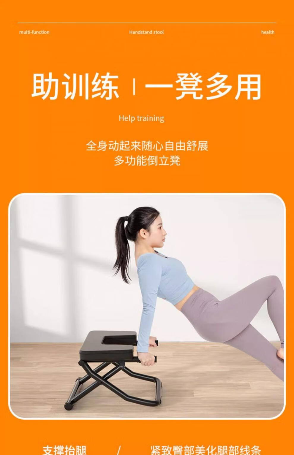 MI Xiaomi Pepper Inversion Stool Inversion Artifact Home Wangou Same Inversion Chair Upside Down Yoga Auxiliary Fitness Equipment Stretcher A Standard Model - Black Round Stable Steel Pipe + Full