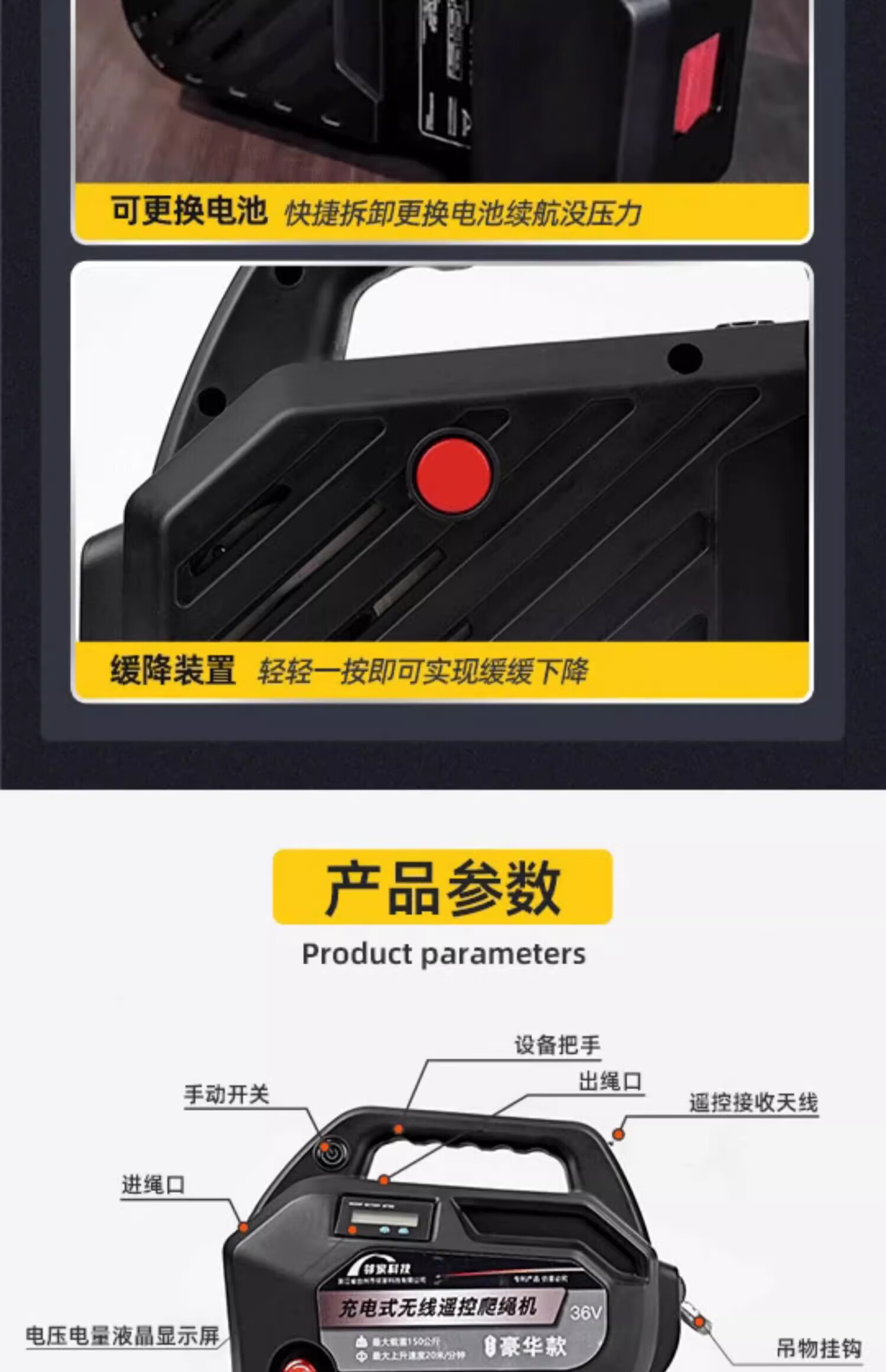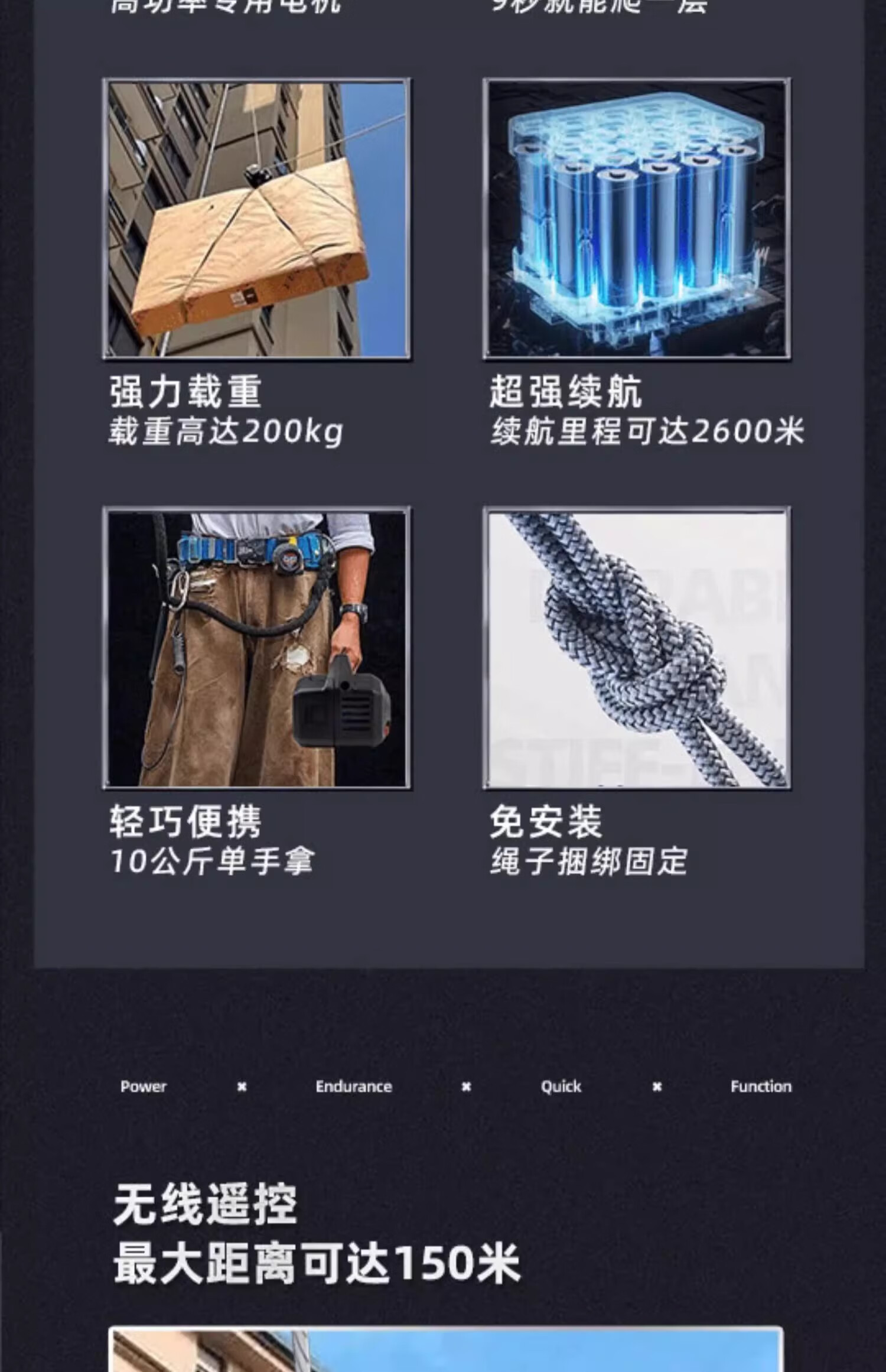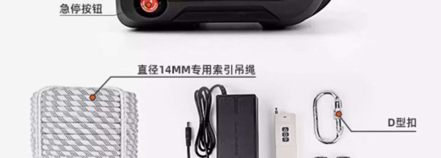 Rechargeable rope climbing machine, electric ascender, remote control lithium battery crane, high-altitude work climber, air-conditioning hoisting artifact, standard model 8m/load 120kg + 20m rope