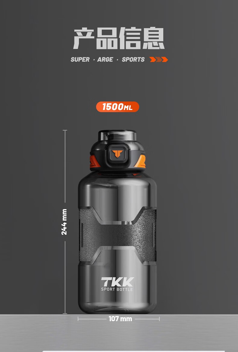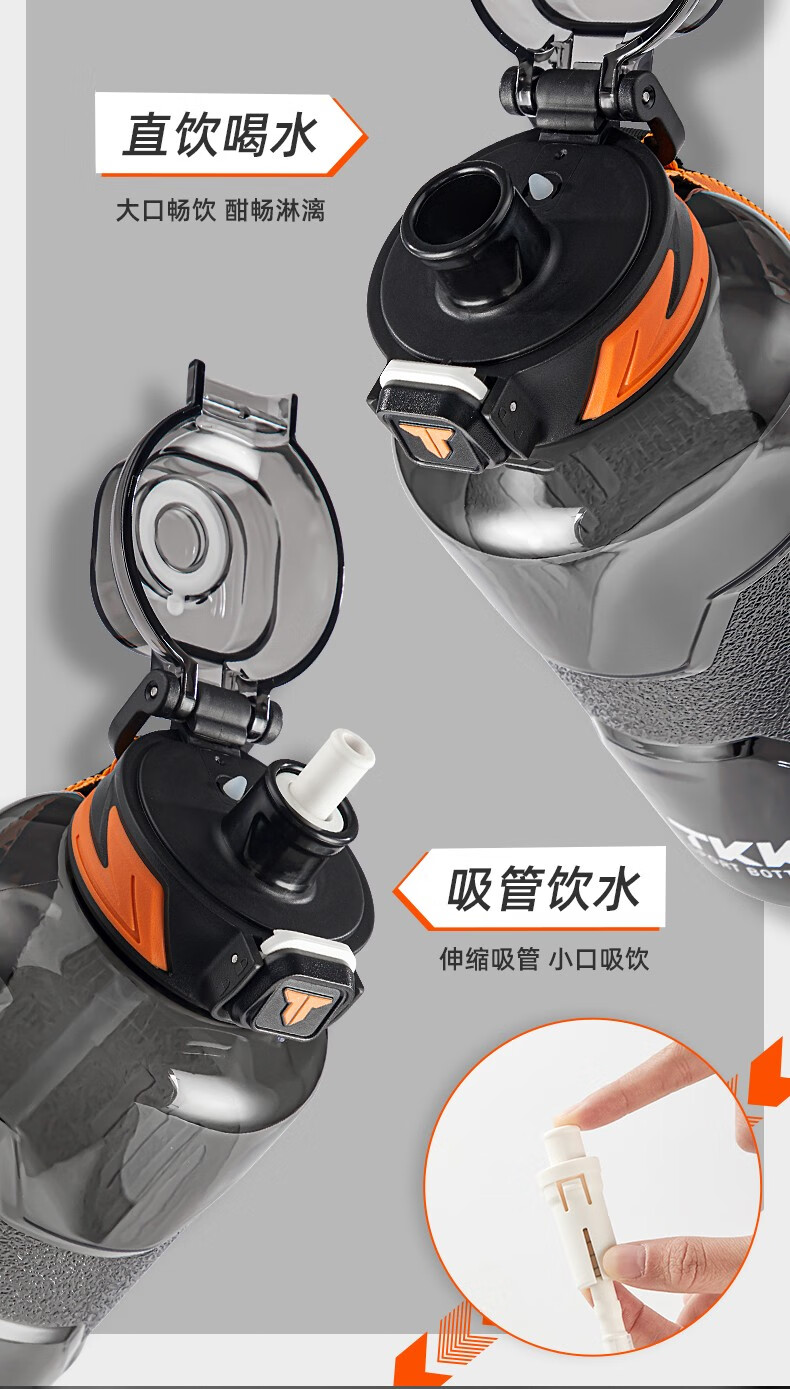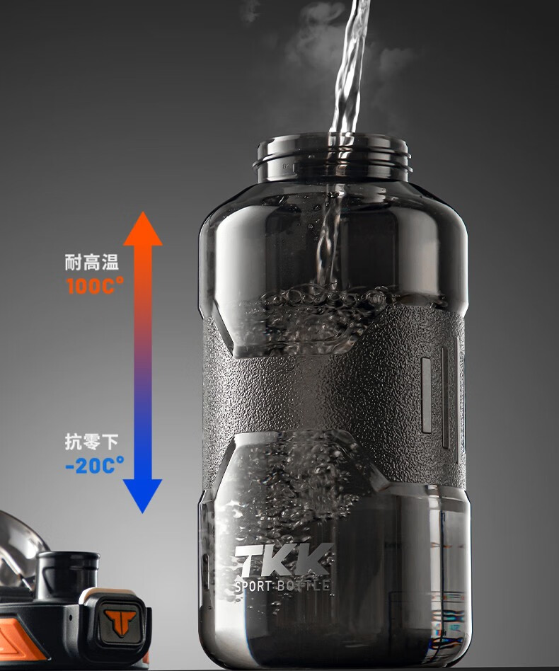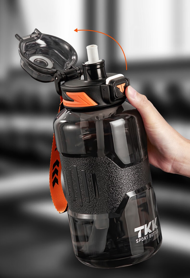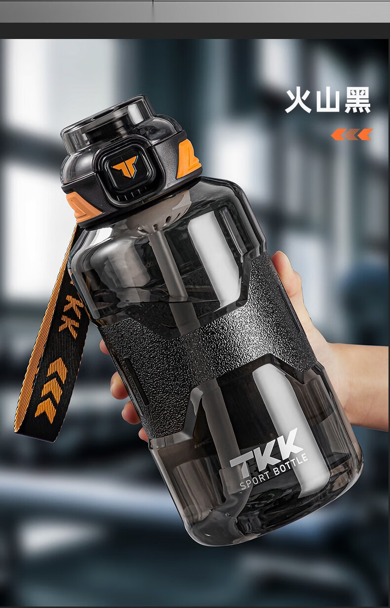 Cica Sports Water Cup Extra Large Capacity Men's and Women's Tritan Plastic Cup High Temperature Resistant Student Water Bottle Ton Bucket Summer (Double Drink + Tea Partition + Scale) Black-2000ml