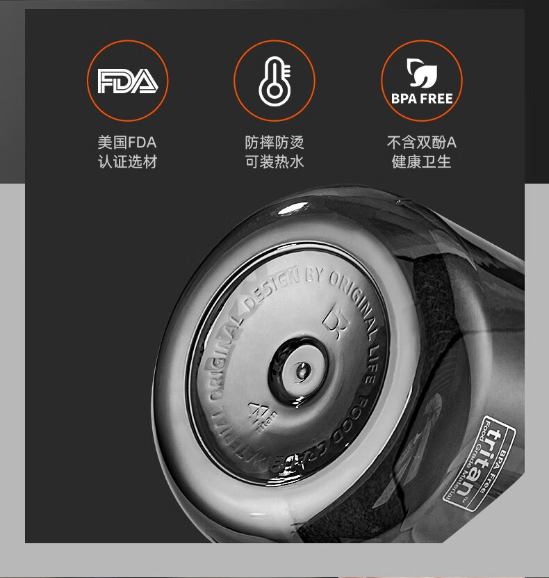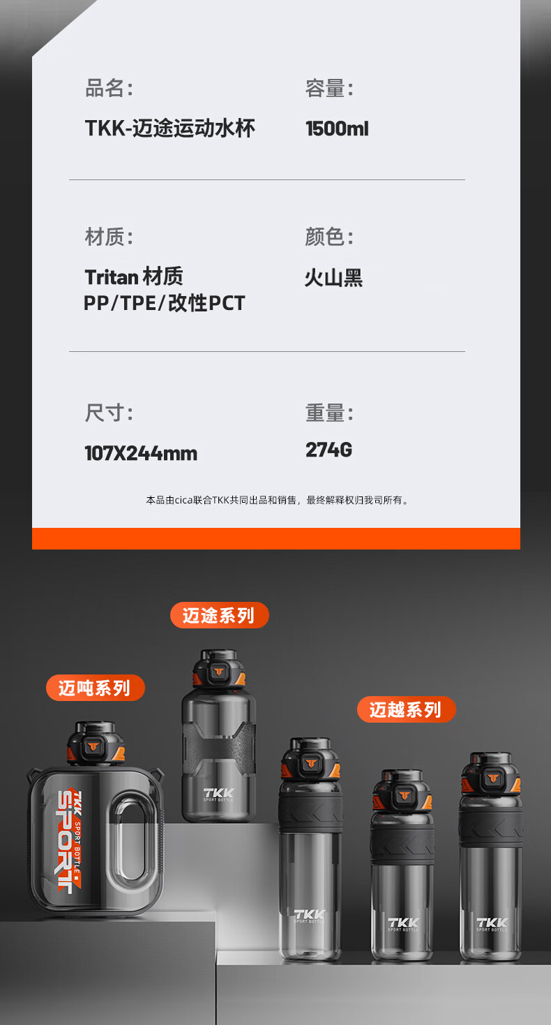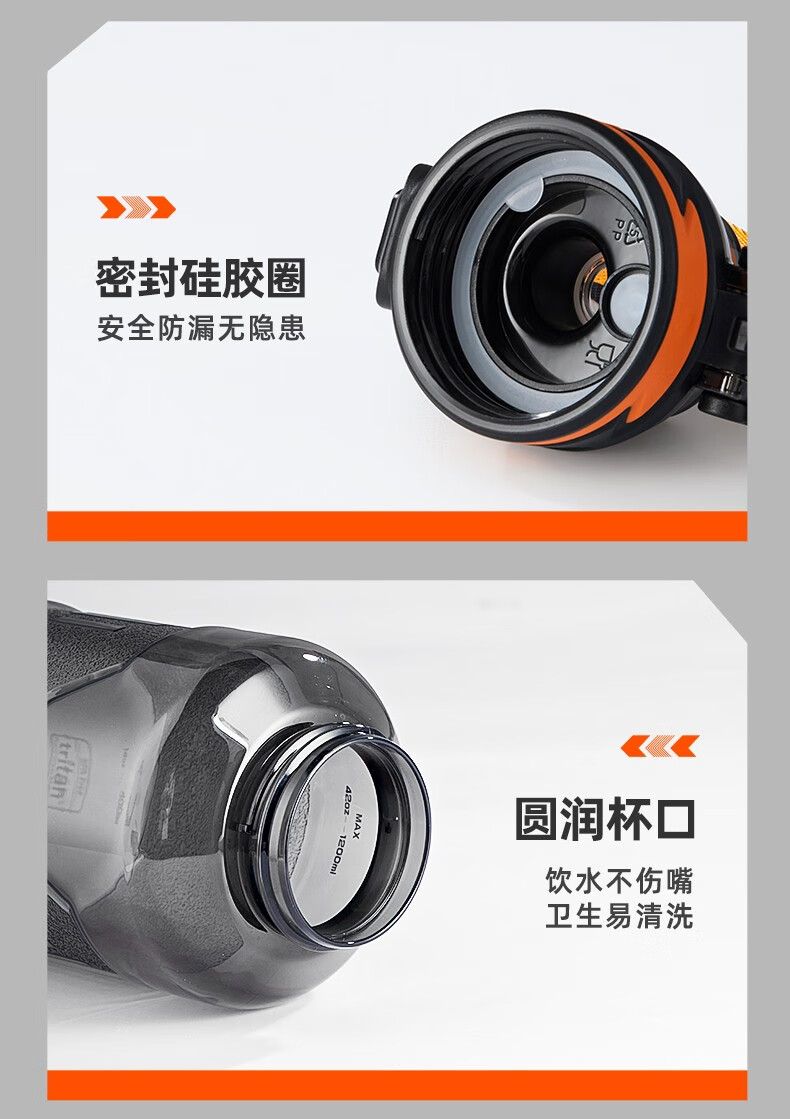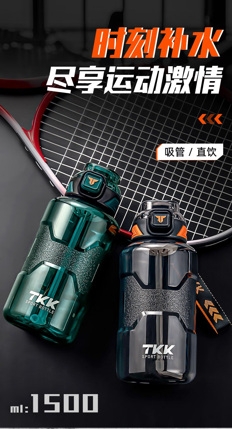 Cica Sports Water Cup Extra Large Capacity Men's and Women's Tritan Plastic Cup High Temperature Resistant Student Water Bottle Ton Bucket Summer (Double Drink + Tea Partition + Scale) Black-2000ml