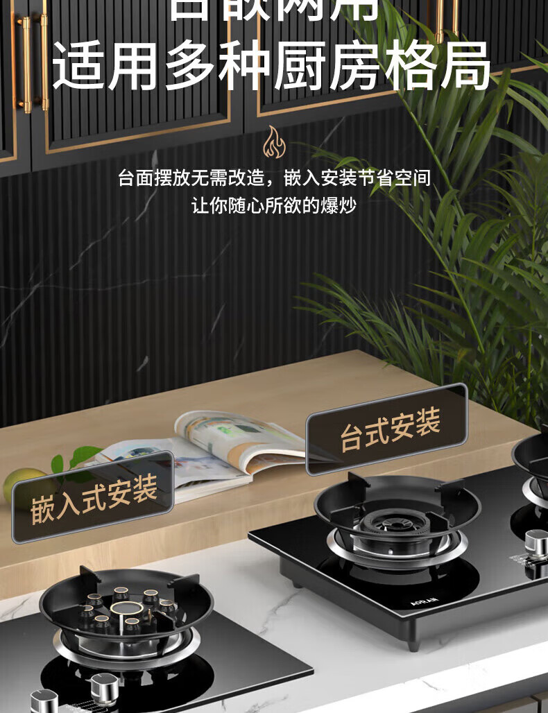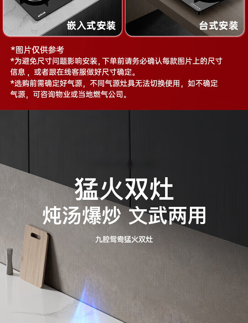 SUDISQR Subo gas stove, natural gas stove, gas stove, double-eye stove, household embedded desktop dual-purpose high-fire gas stove, stainless steel stove, adjustable chassis, subsidy, liquefied gas, double nine-cavity high-fire stove + flameout guarantee + child lock + explosion-proof glass