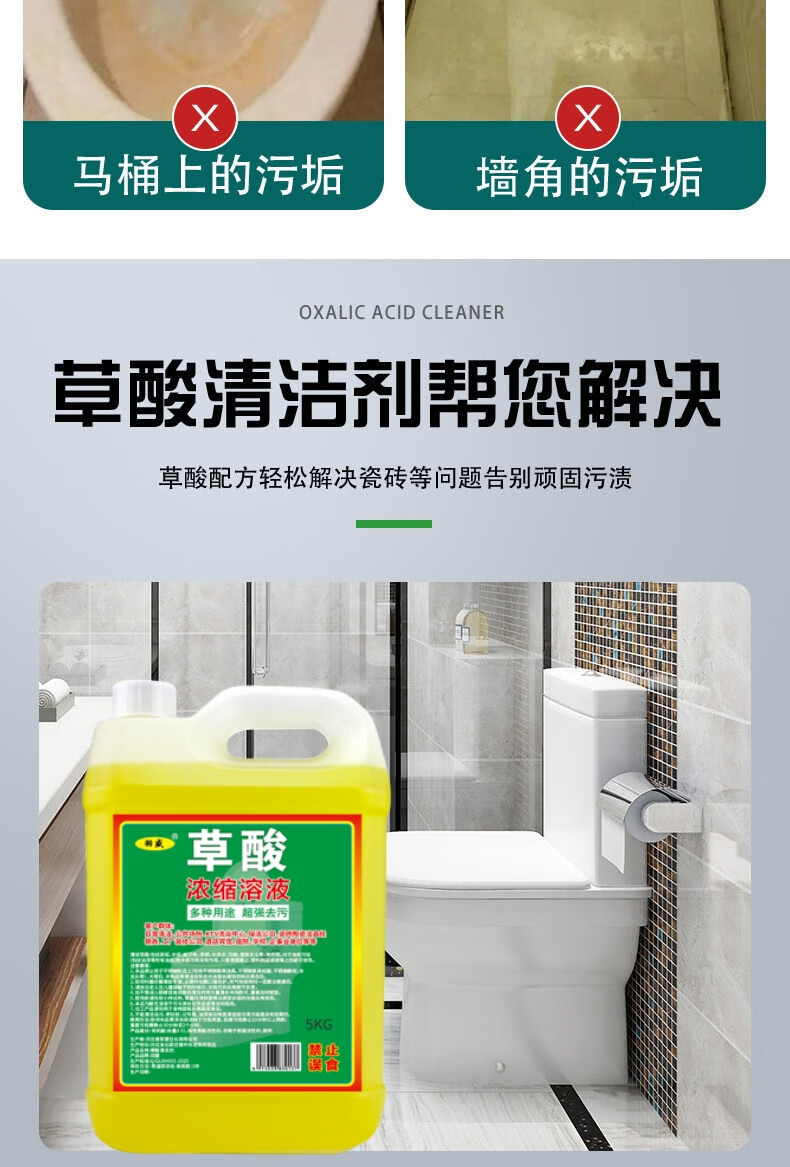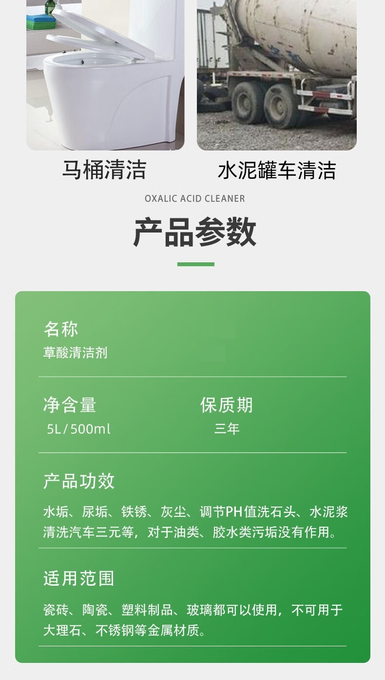Oxalic acid cleaner, high concentration descaler, toilet industrial cement cleaner, tile powerful decontamination and descaling, 10 catties nozzle gloves, 1 pack