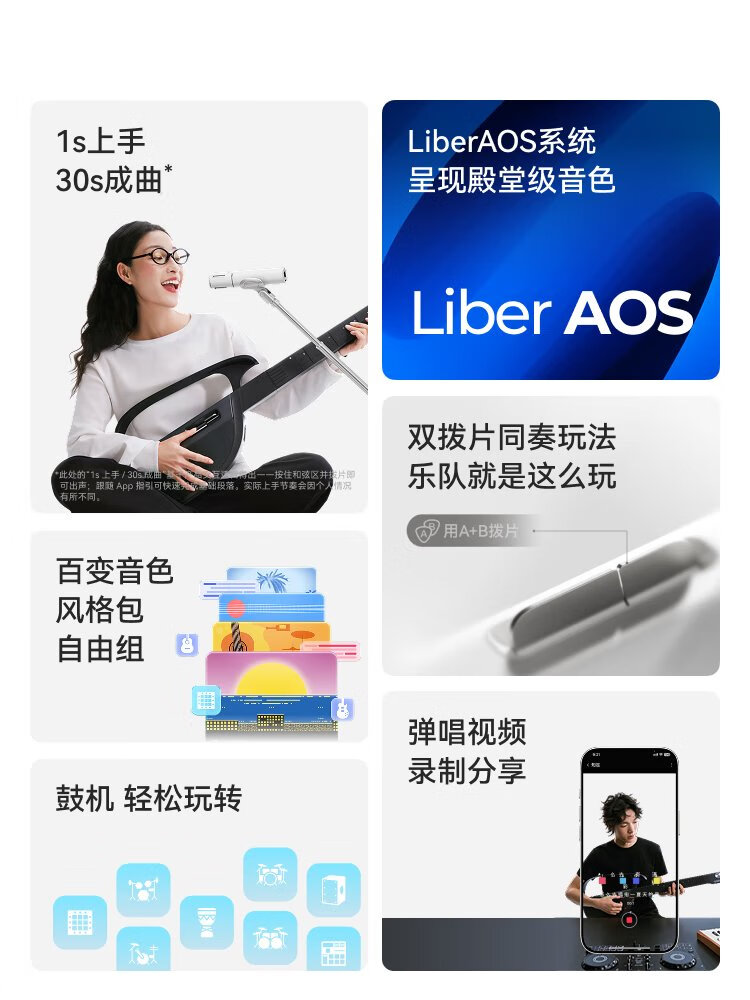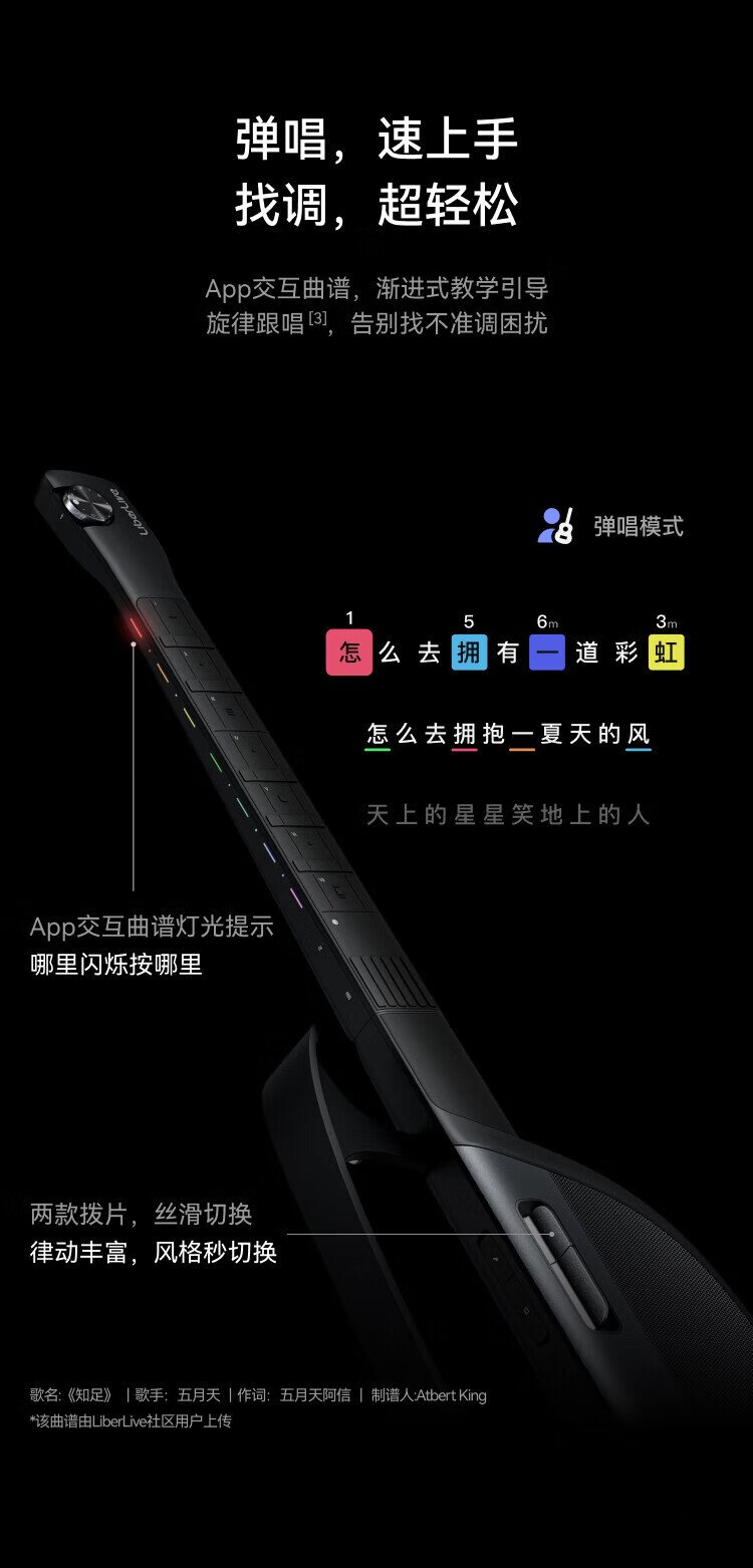 LIBERLIVEC2 Stringless Guitar Smart Electric Guitar Automatic Singing Beginner Guitar New Year Gift for Girls Official Standard Gravity Black + Strap (Black) Main unit and strap shipped separately
