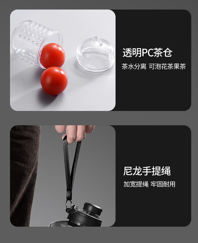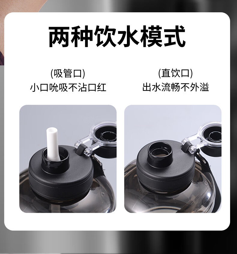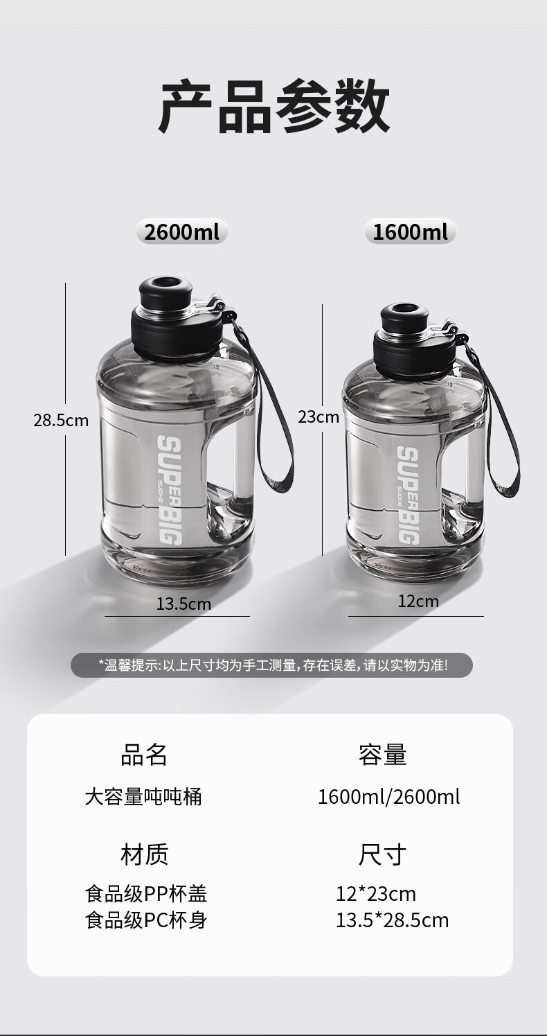 Summer large-capacity sports water bottle for men's fitness ton ton bucket food grade high temperature resistant plastic water cup student ton ton black 1600ml