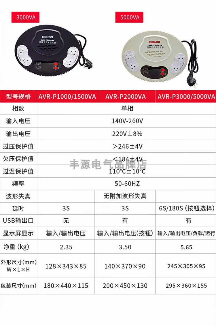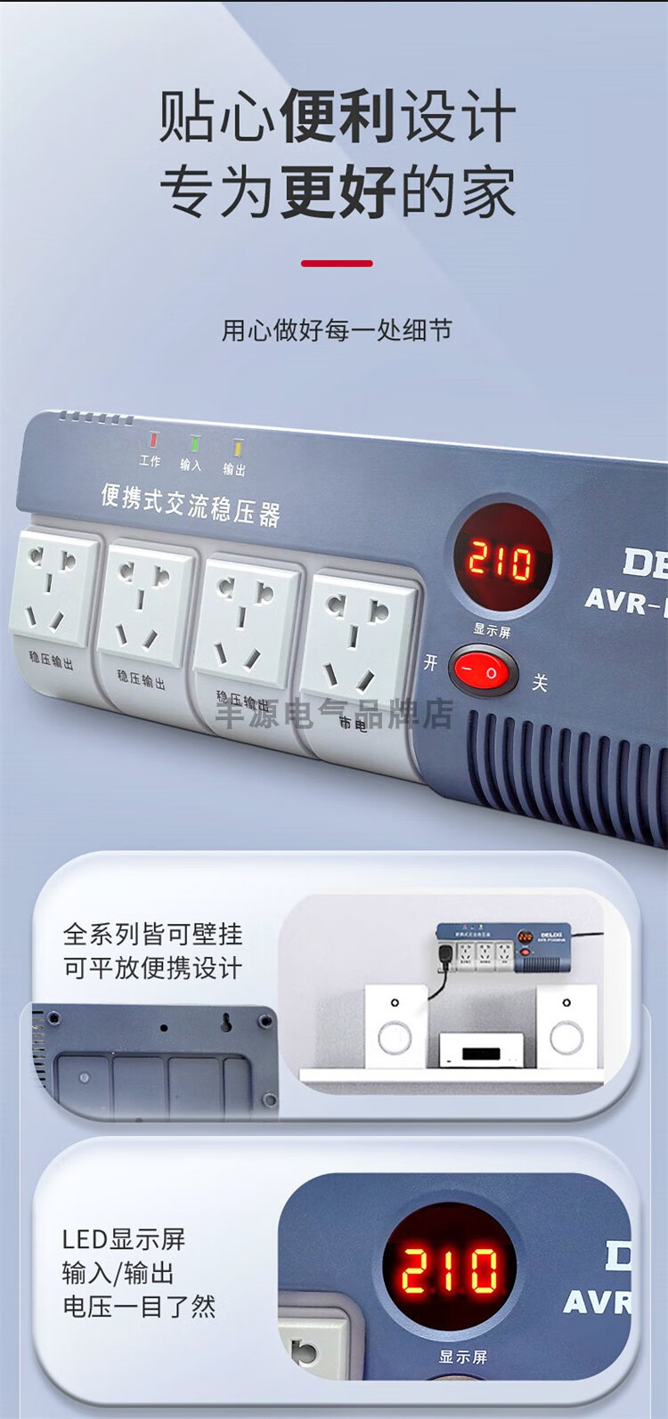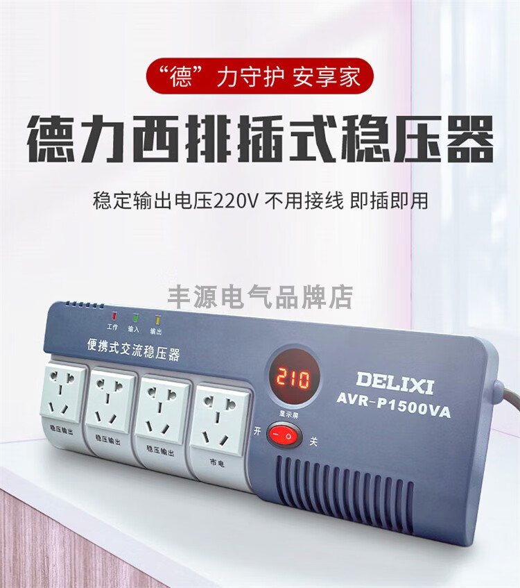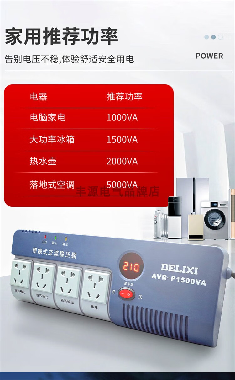 Delixi fully automatic single-phase AC voltage stabilizer household 220V power supply five-hole socket plug-in computer 5KW 1000W