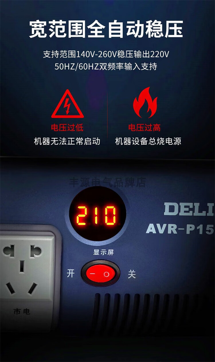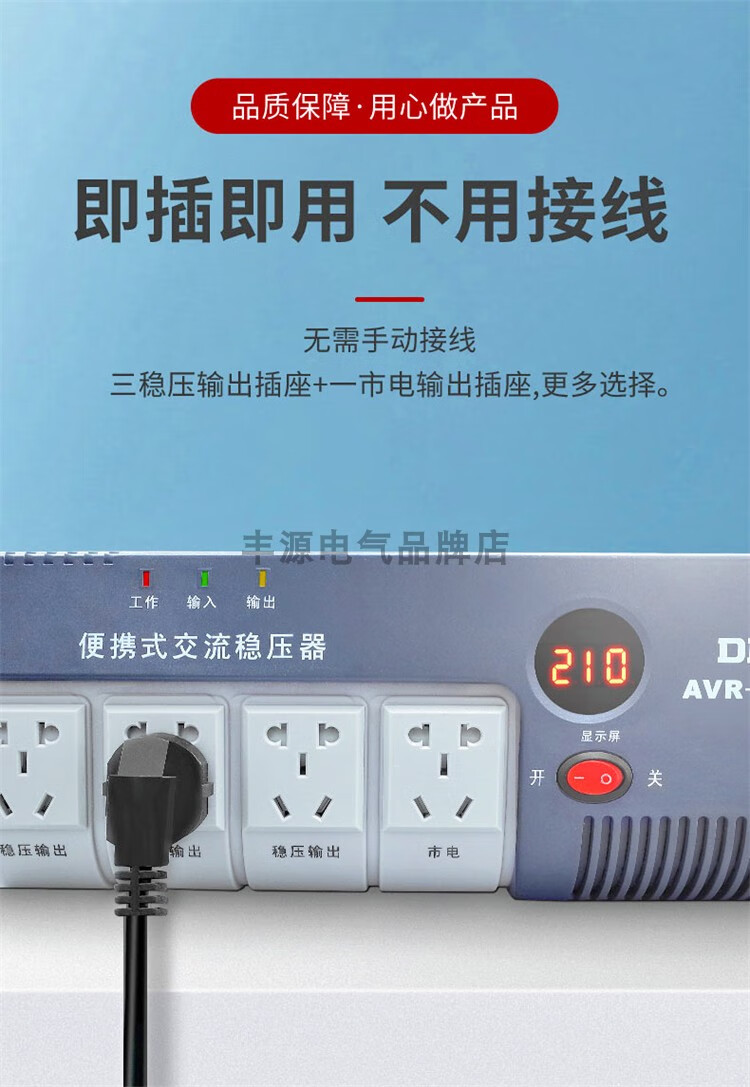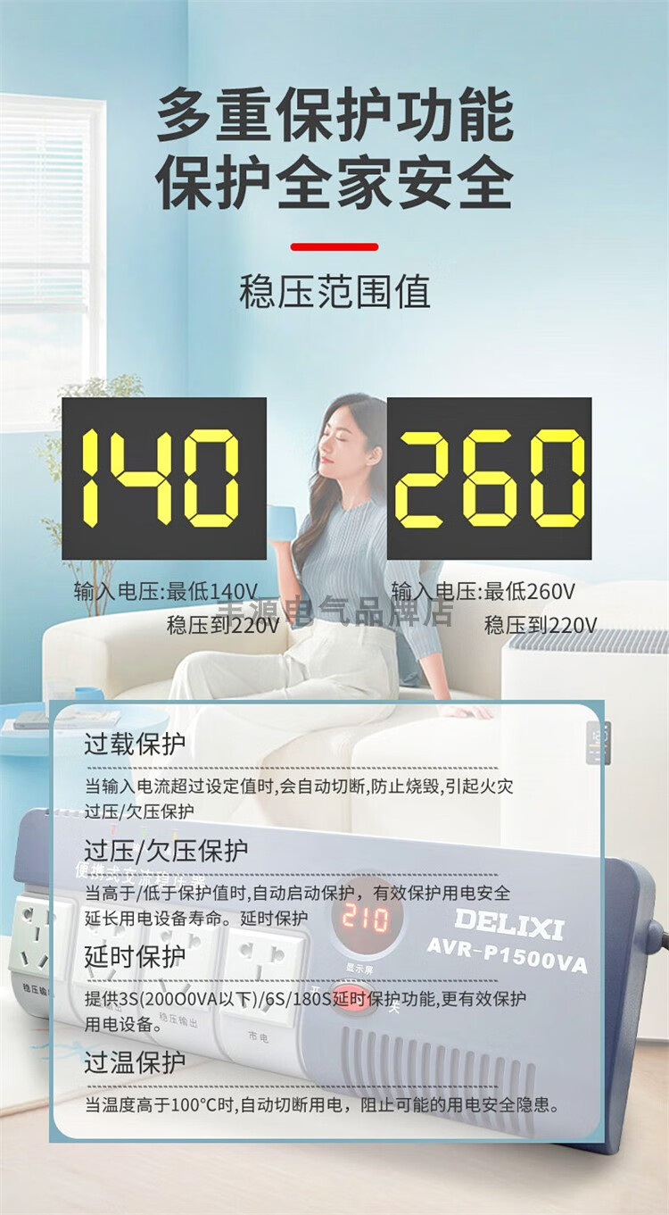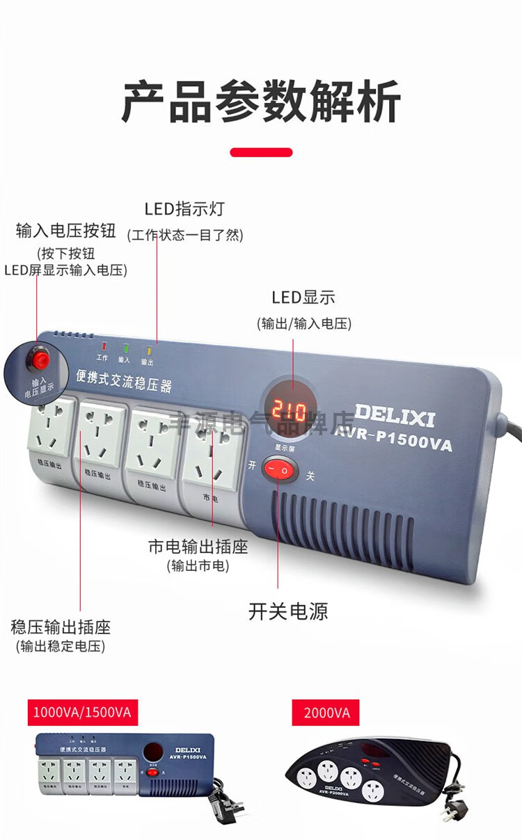 Delixi fully automatic single-phase AC voltage stabilizer household 220V power supply five-hole socket plug-in computer 5KW 1000W