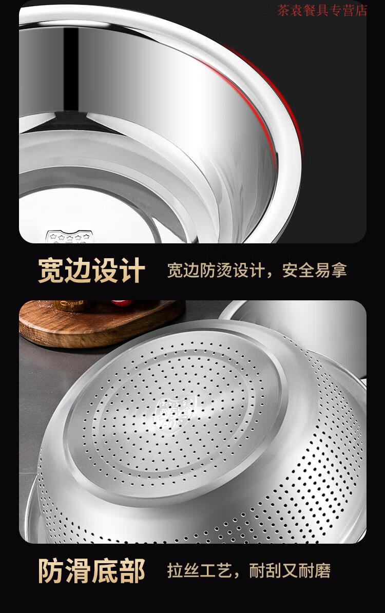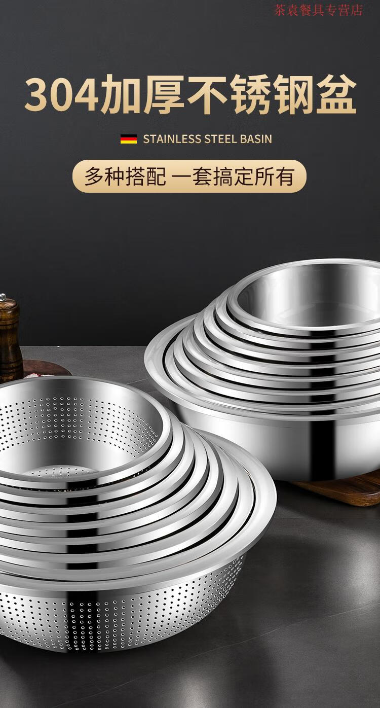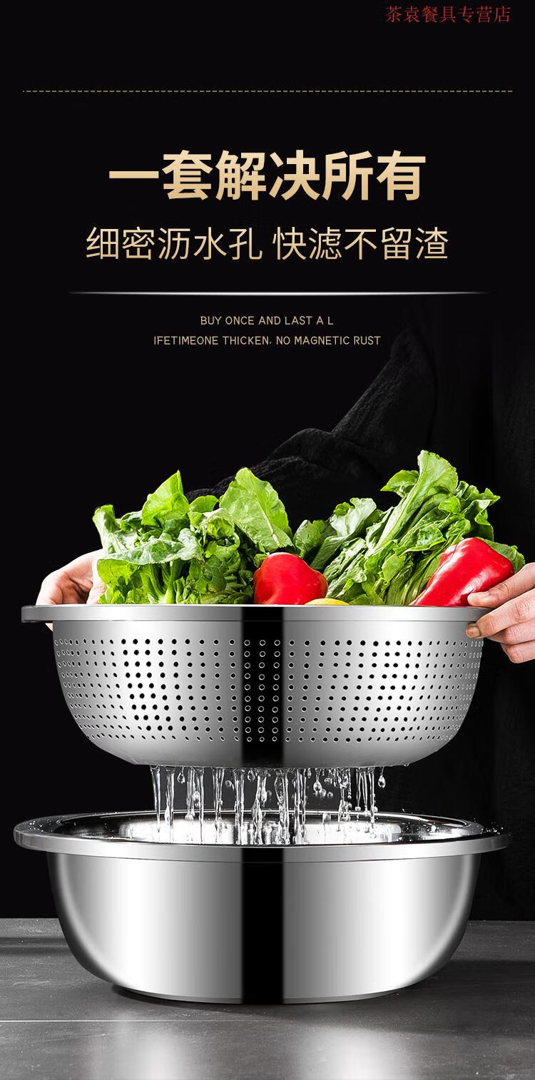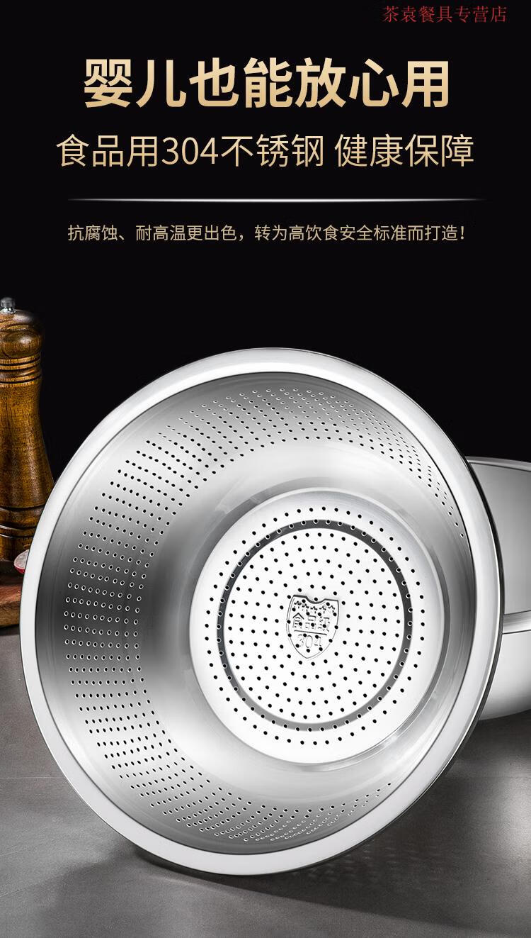 ZSR German quality 304 stainless steel dish basin drain basket rice washing sieve rice basin kitchen artifact fruit basket household 304 stainless steel solid basin 45CM