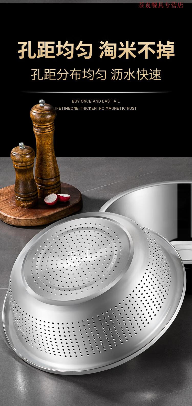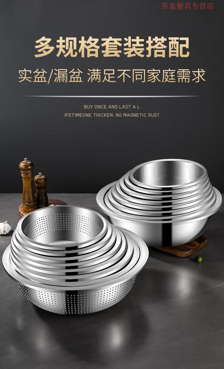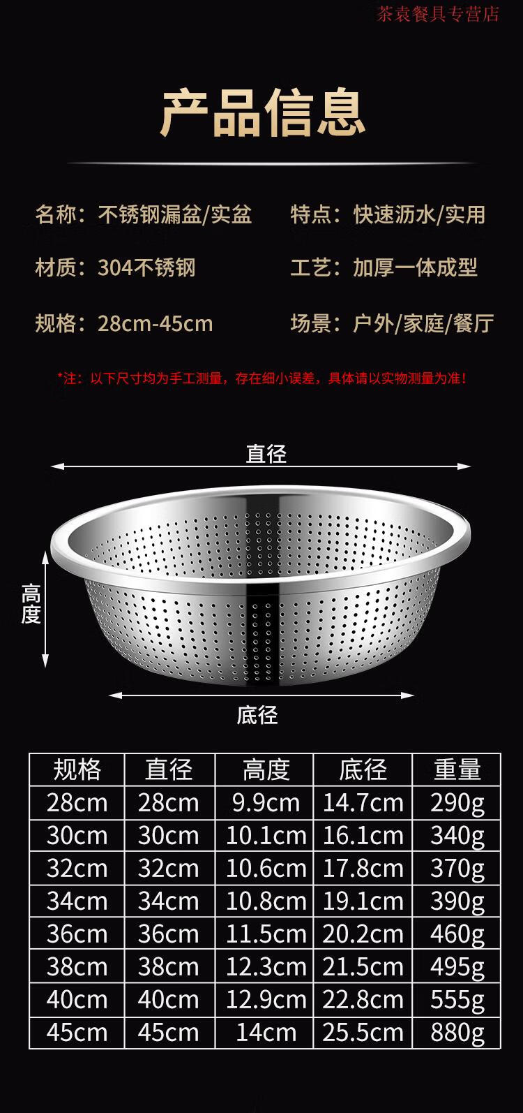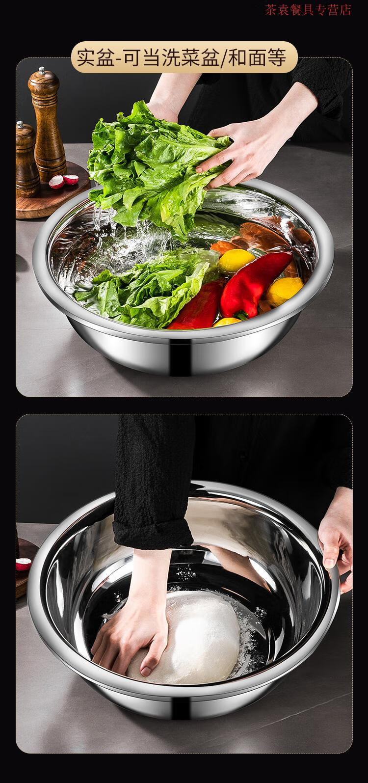 ZSR German quality 304 stainless steel dish basin drain basket rice washing sieve rice basin kitchen artifact fruit basket household 304 stainless steel solid basin 45CM