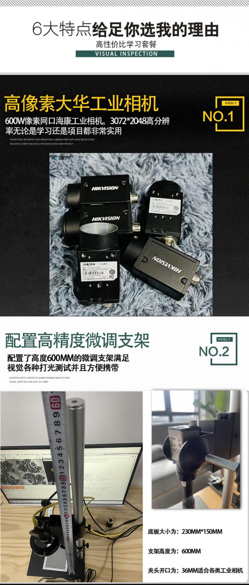 Machine Vision Experiment Frame Set Vision Learning Package Haikang Industrial Camera Learning Vision Solution Customized Separate Cable Package (Communication Line IO Line Power Supply)