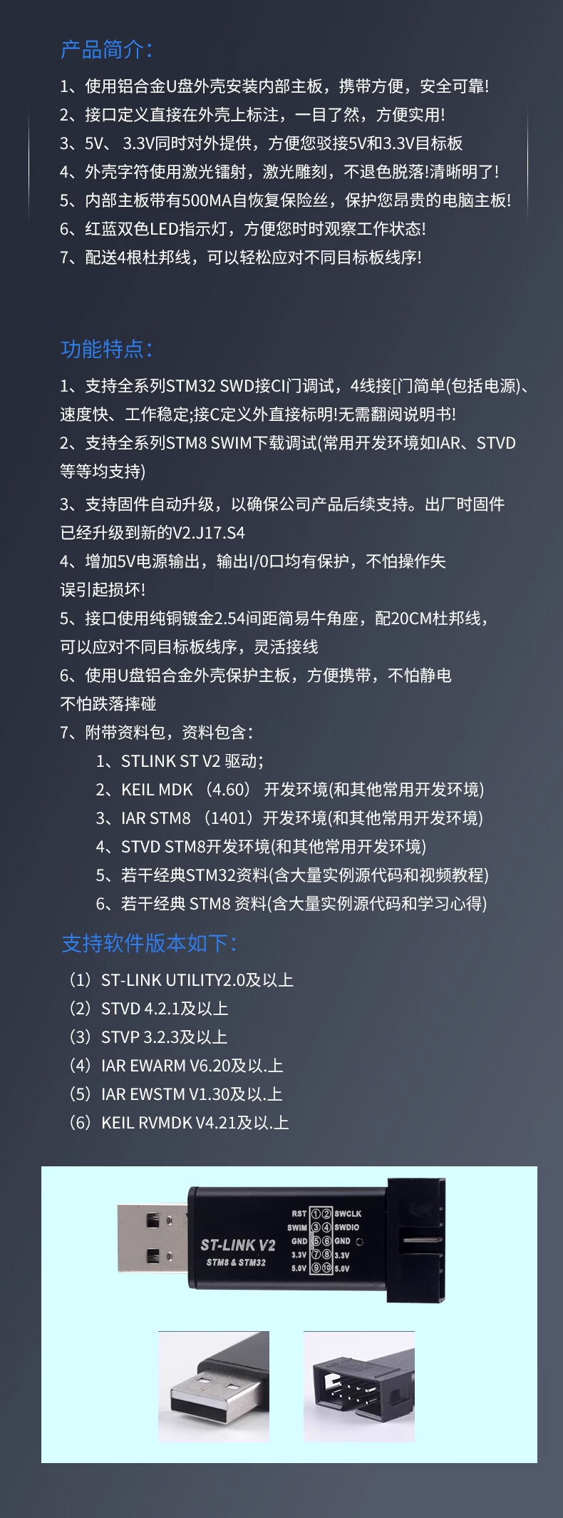 ST-LINK V2 STM8/STM32 emulator programming stlink downloader line burning and debugging microcontroller ST-LINK V2 (color randomly sent)