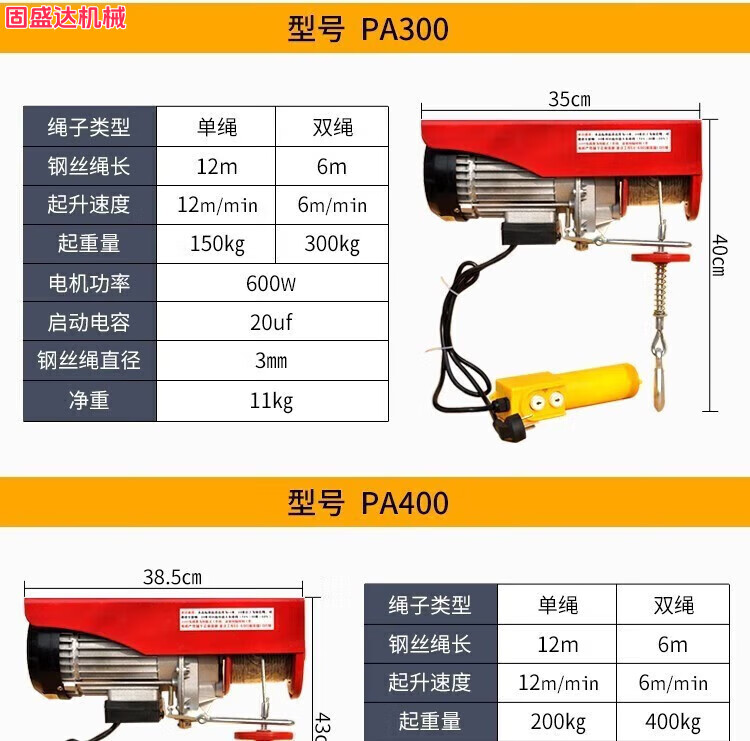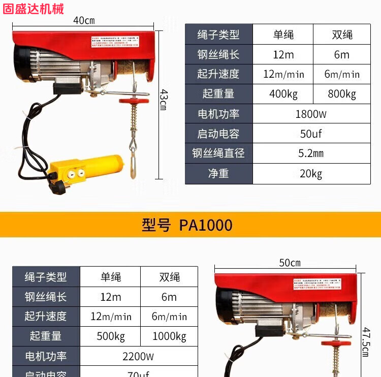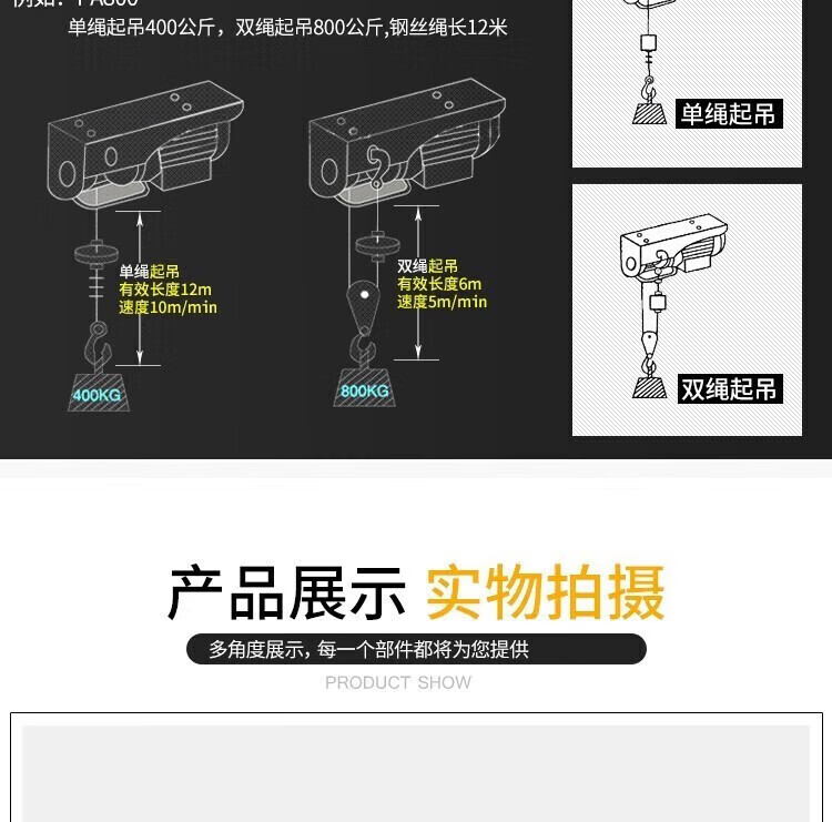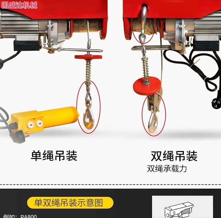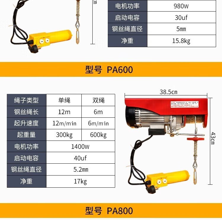 Electric hoist winch wire remote control household small crane micro lifting crane household small crane lift PA200*12 meters single rope 100kg double rope 200kg