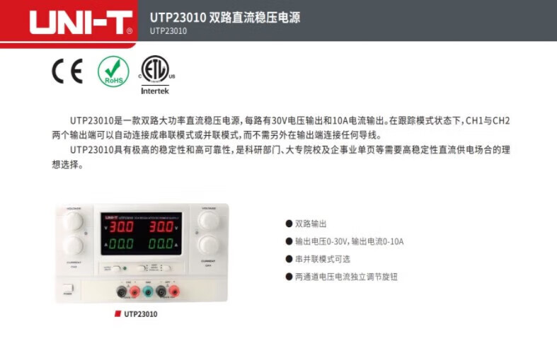 Unilide UTP23010160201200513030 dual-channel high-power linear adjustable DC regulated power supply UTP16020 (single channel 60V/20A)