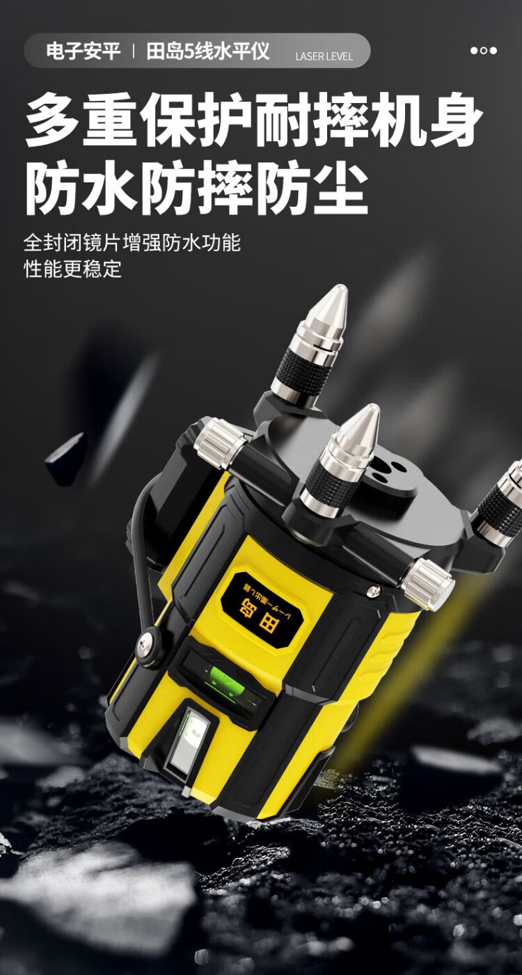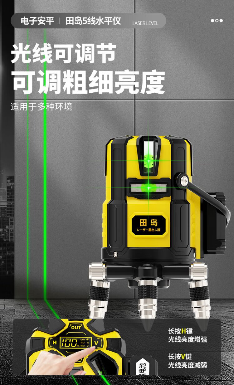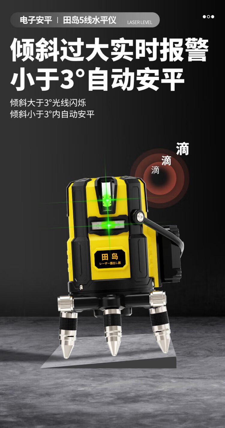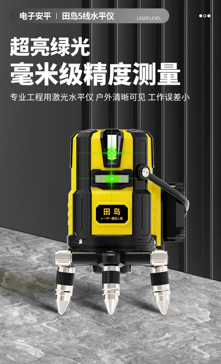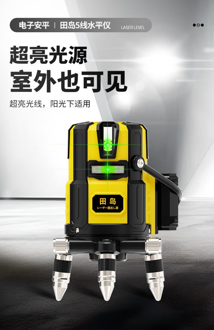 Tajima Electronics Leveling Infrared Leveling High-Precision Strong Light Thin Line Automatic Leveling Green Light Outdoor Building Portable Electronic Leveling 5 Lines (Green Light)
