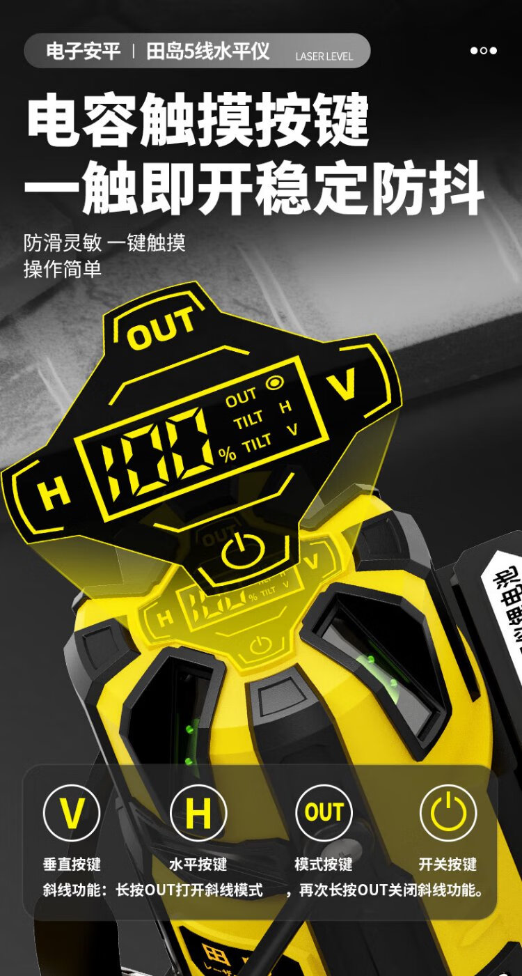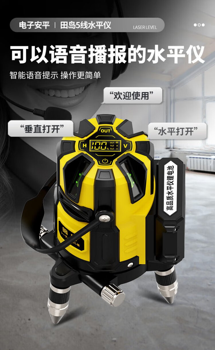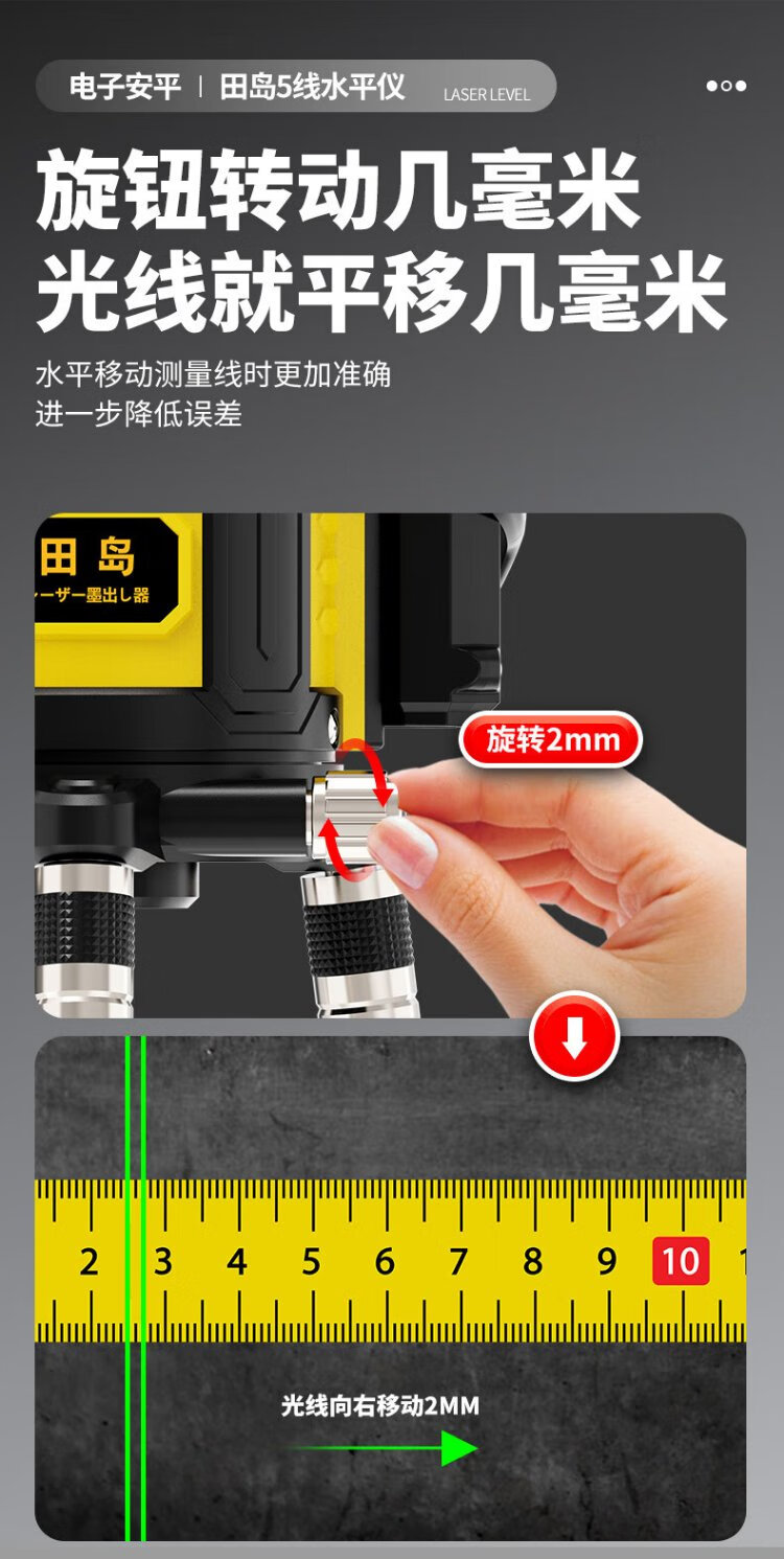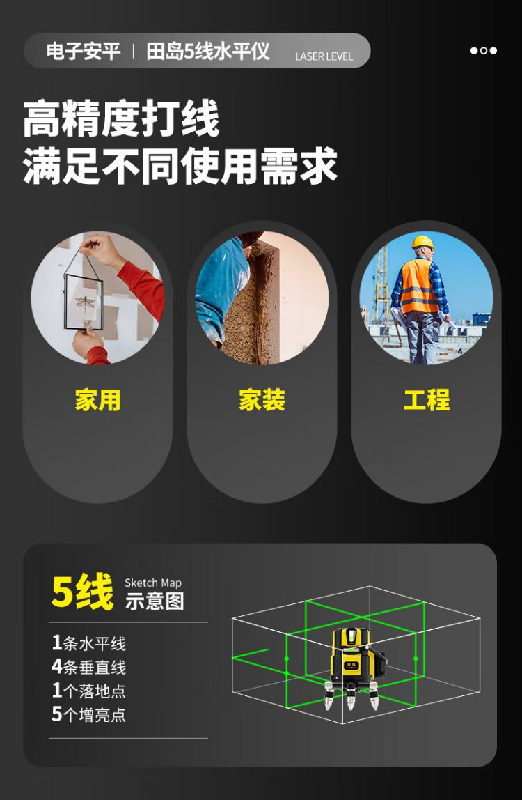 Tajima Electronics Leveling Infrared Leveling High-Precision Strong Light Thin Line Automatic Leveling Green Light Outdoor Building Portable Electronic Leveling 5 Lines (Green Light)