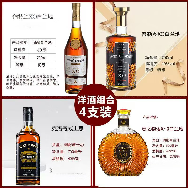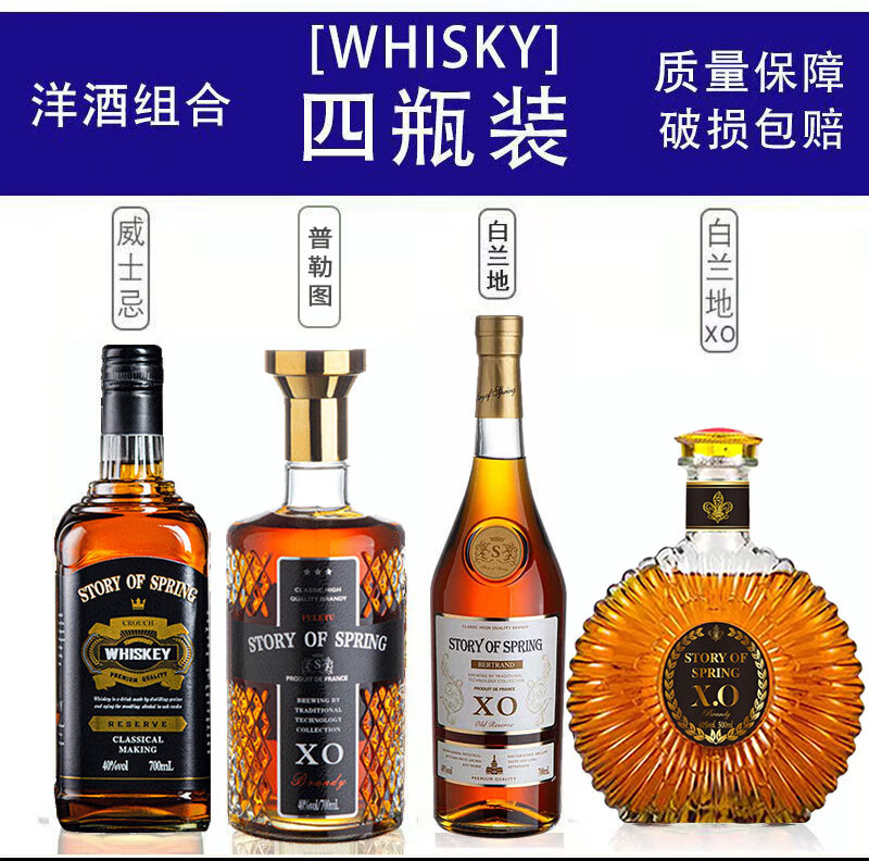 Spring Story foreign wine set 4 bottles formal XO brandy whiskey display cabinet good choice for party gifts 4 bottles foreign wine set