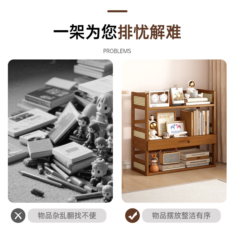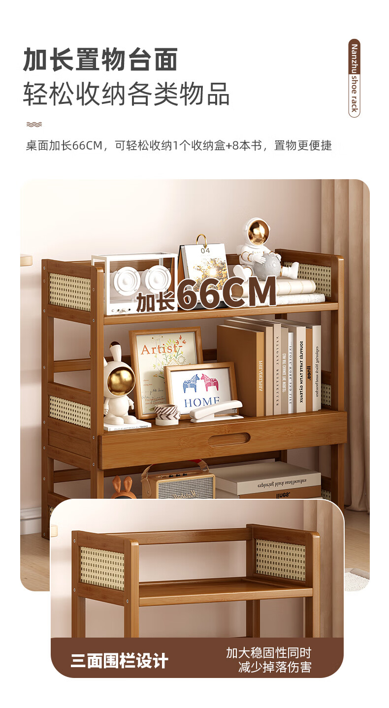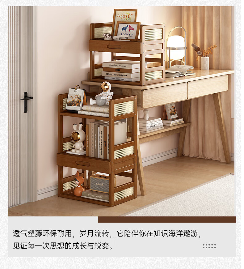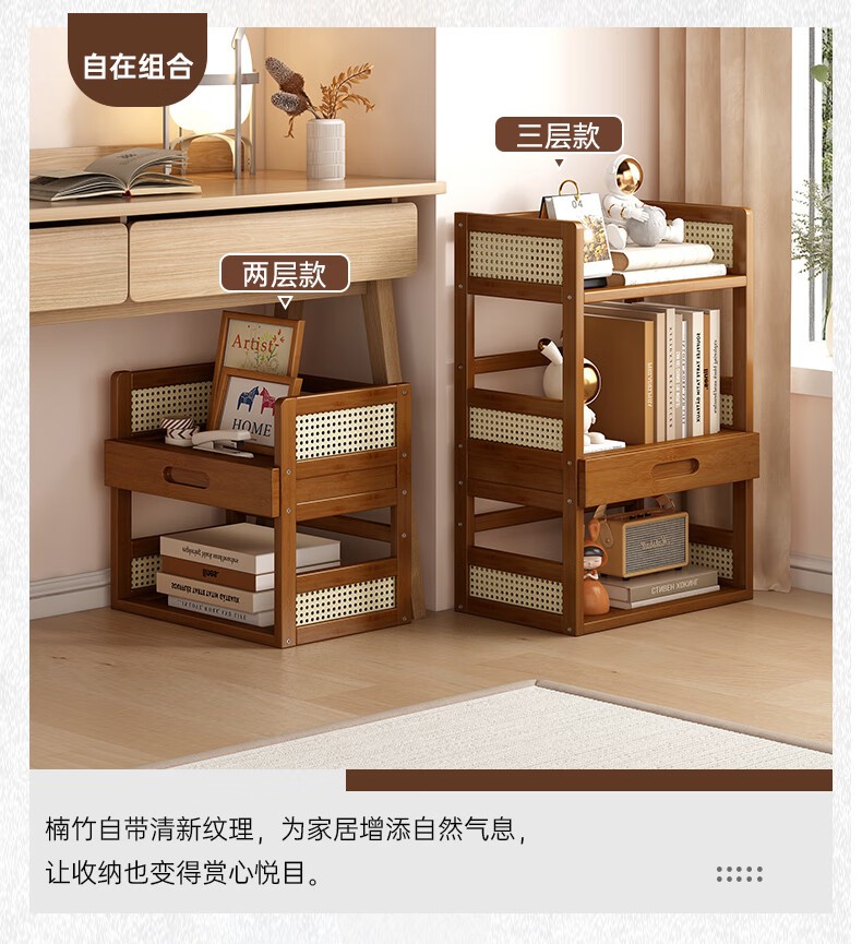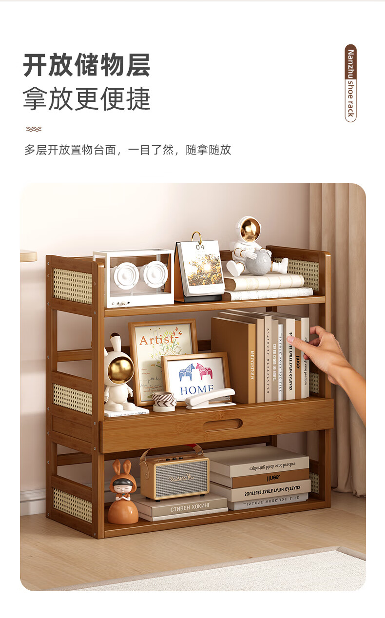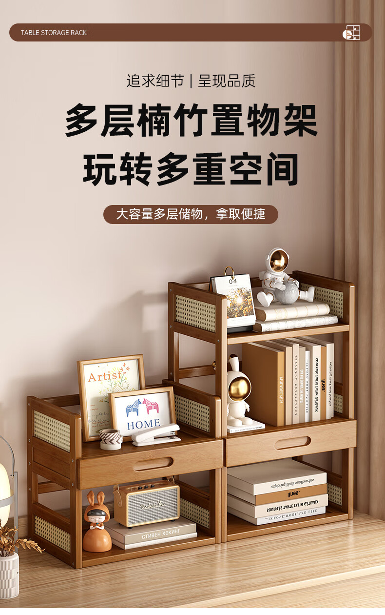 Jungle Storage Rack Desktop Bookshelf Office Computer Desktop Storage Rack Simple Multi-Layer Organizing Rack Home Floor-standing Storage Rack Brown丨2 layers 40cm Bold and Reinforced
