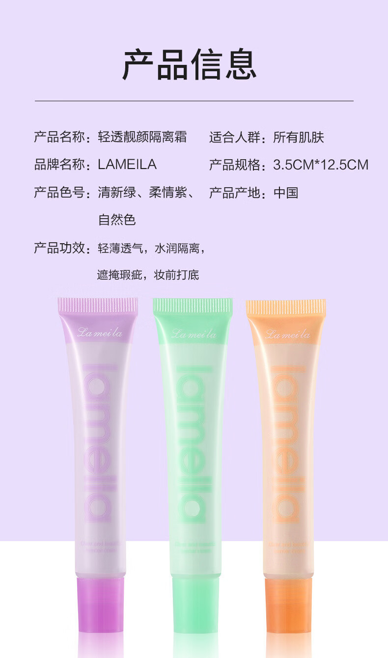 Meila clear and beautiful face light and moisturizing invisible pore long-lasting facial moisturizing primer isolation cream 3327-2# fresh green