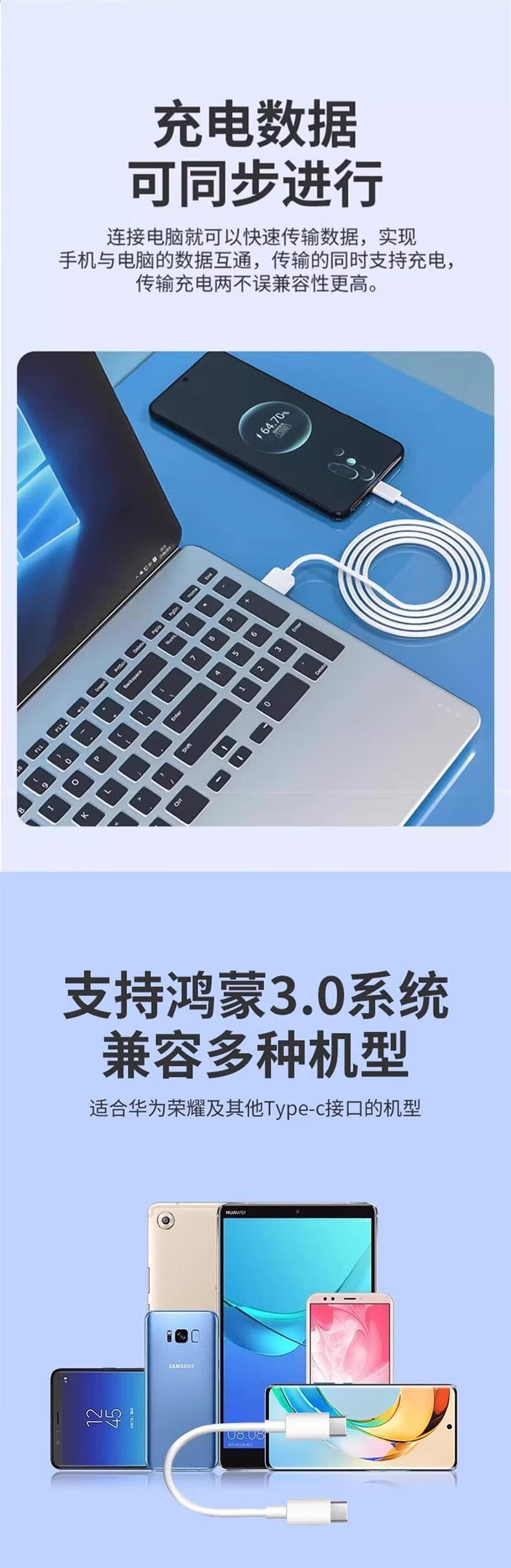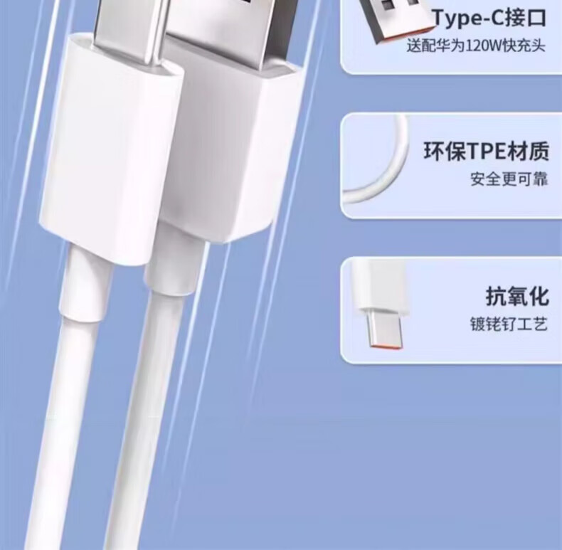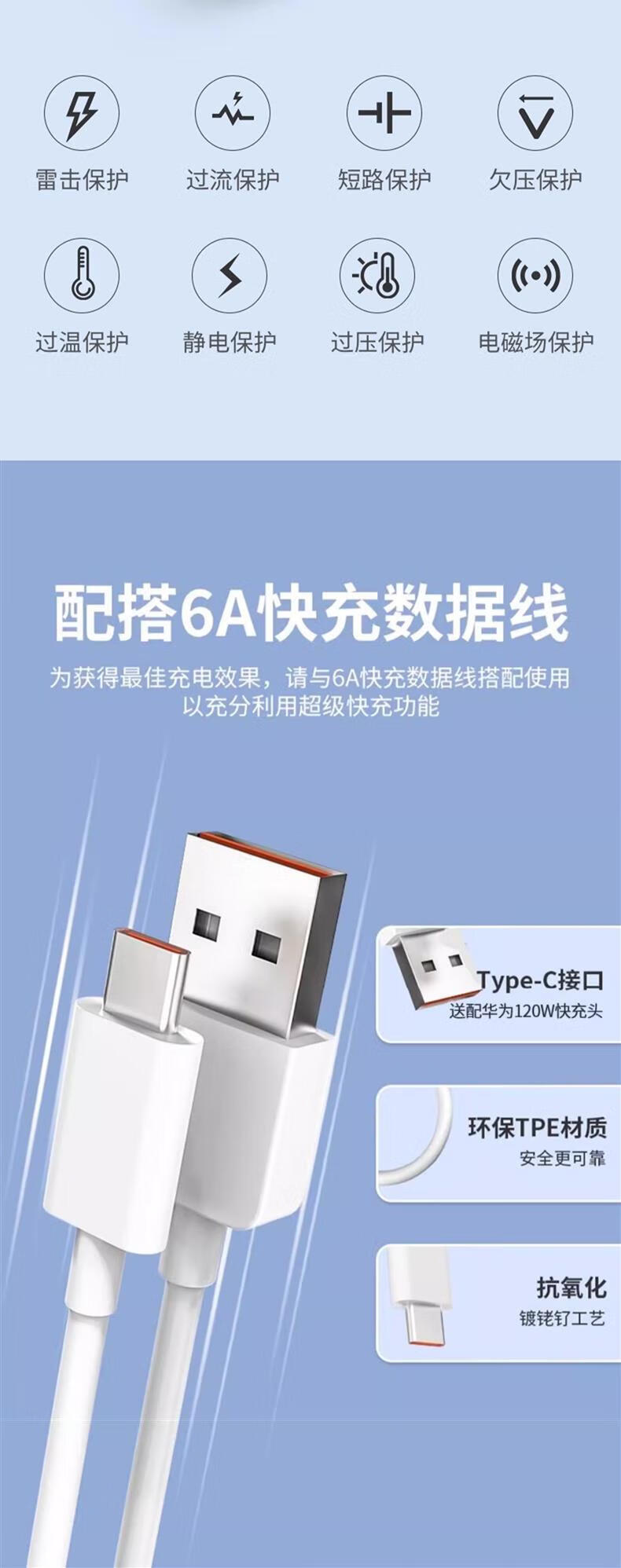 Jingyouyu is suitable for Huawei 120W charger 66W fast charging mobile phone charging head Mate60/30pro original 40/nova5/6/7/8/9/10/6A data cable set 6 1.0 meter fast charging cable single pack