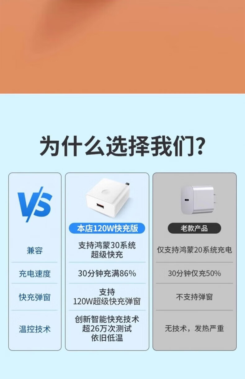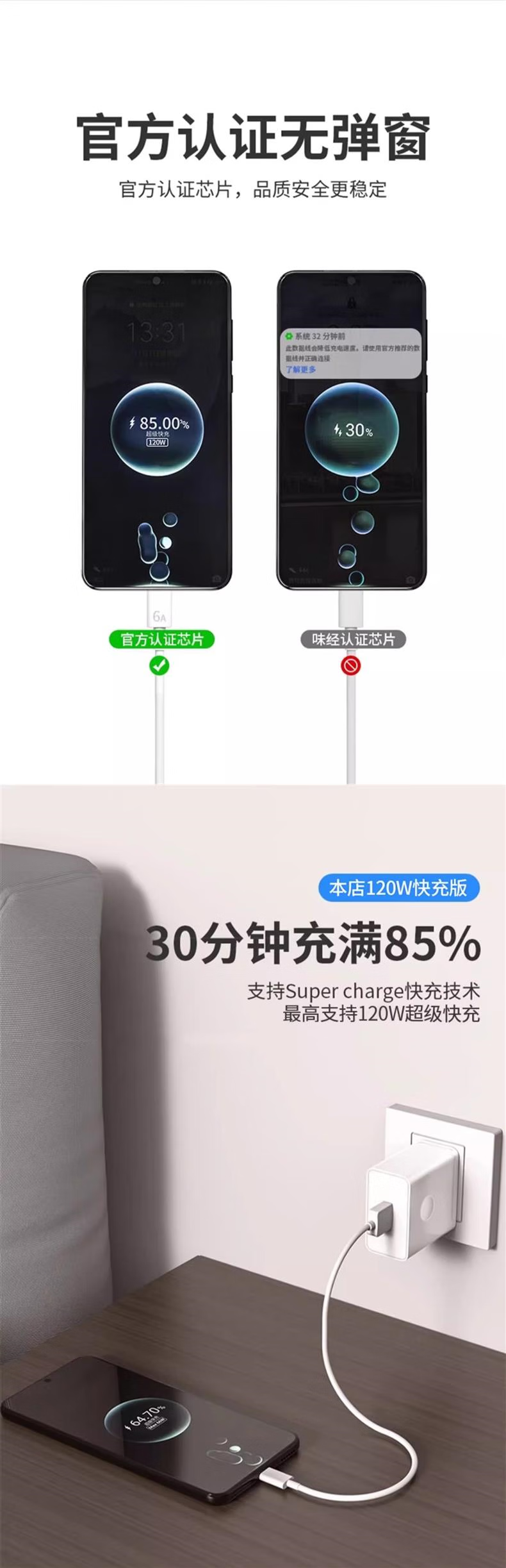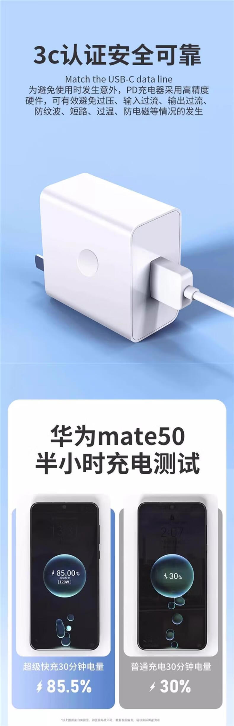 Jingyouyu is suitable for Huawei 120W charger 66W fast charging mobile phone charging head Mate60/30pro original 40/nova5/6/7/8/9/10/6A data cable set 6 1.0 meter fast charging cable single pack