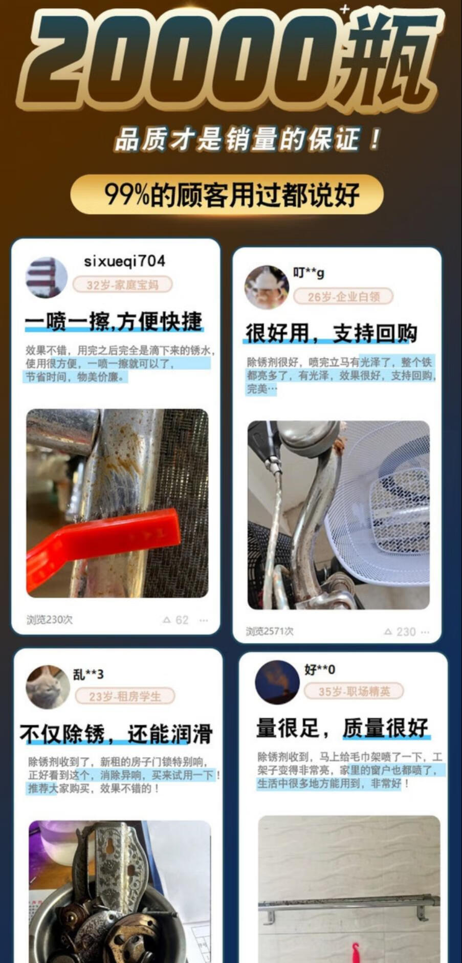 Zongchen Rust Remover Metal Quick Cleaning Powerful Anti-rust and Rust Removal Iron Door Shaft Hinge Noise Lubrication Loose Screws Zongchen Rust Remover 1 Bottle 450ml Comes with Sandpaper + Comes with Spray