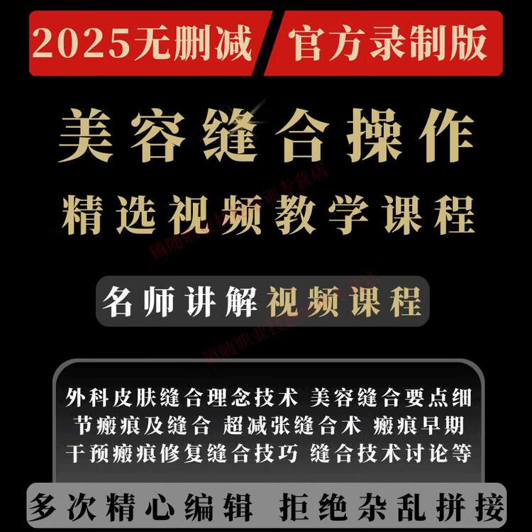 Cosmetic suture operation video tutorial, surgical skin tension reduction suture technique, scar prevention course teaching, electronic data network disk delivery