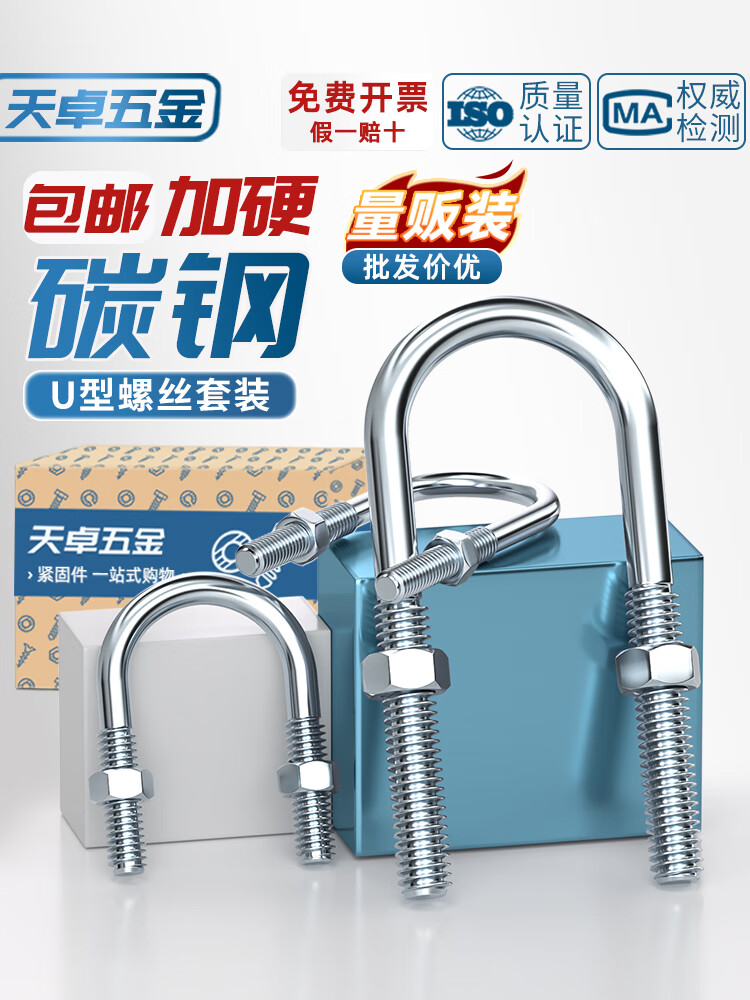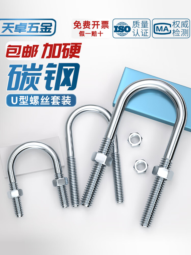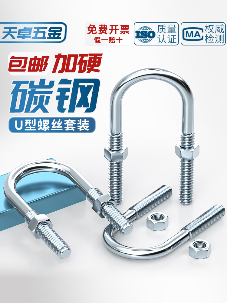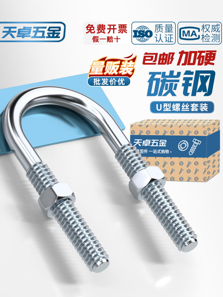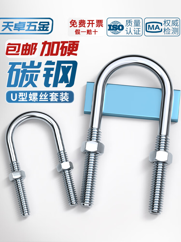 Tianzhuo Hardware galvanized U-shaped bolt screw extended U-shaped pipe clamp pipe clamp hoop fixed riding buckle M10M12 M10*114*170 5 sets