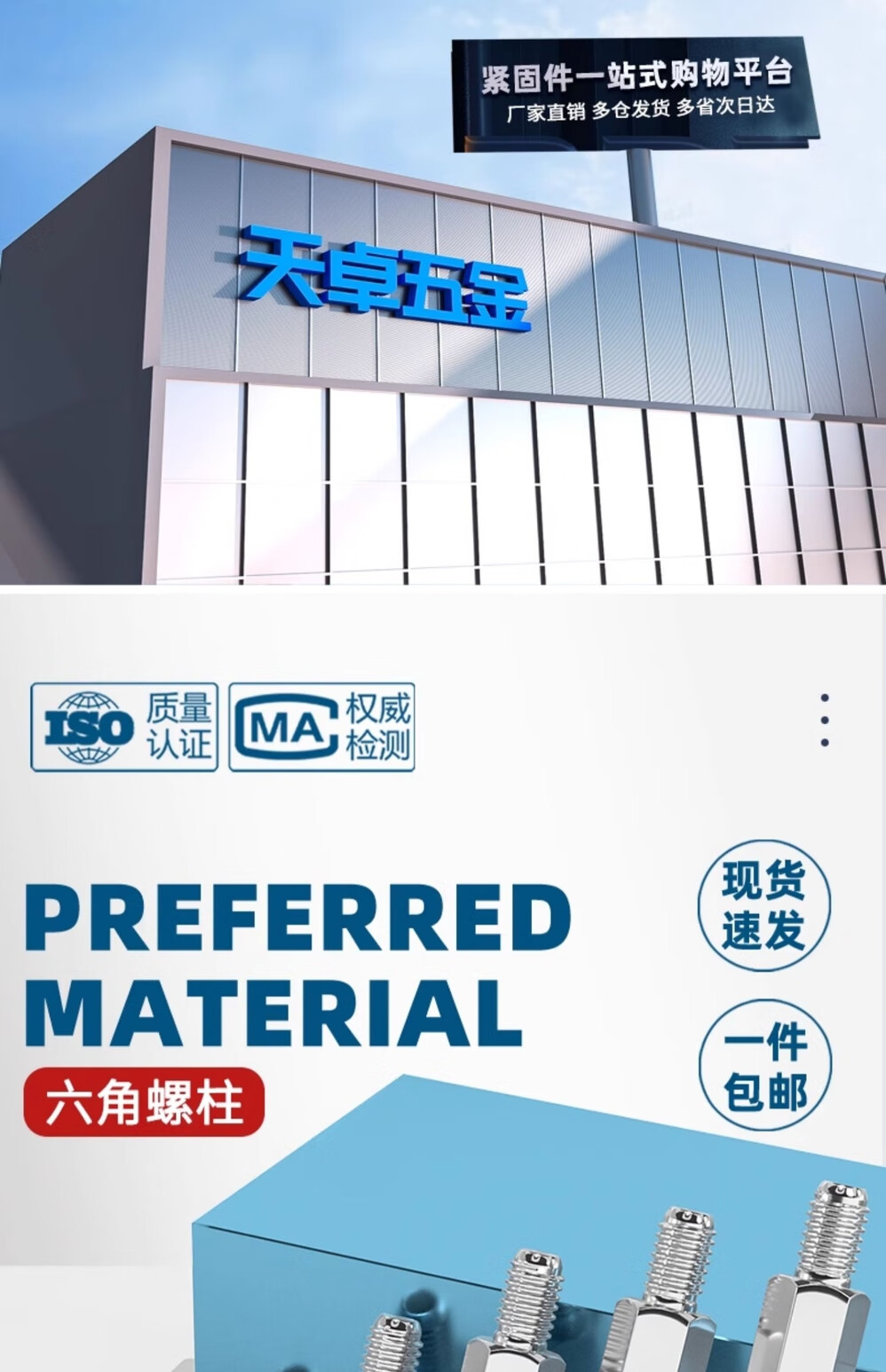 Tianzhuo Hardware 304 stainless steel single-head hexagonal isolation column Yin and Yang stud single-pass internal and external tooth connection copper column M3 M2*3+4 30 pieces