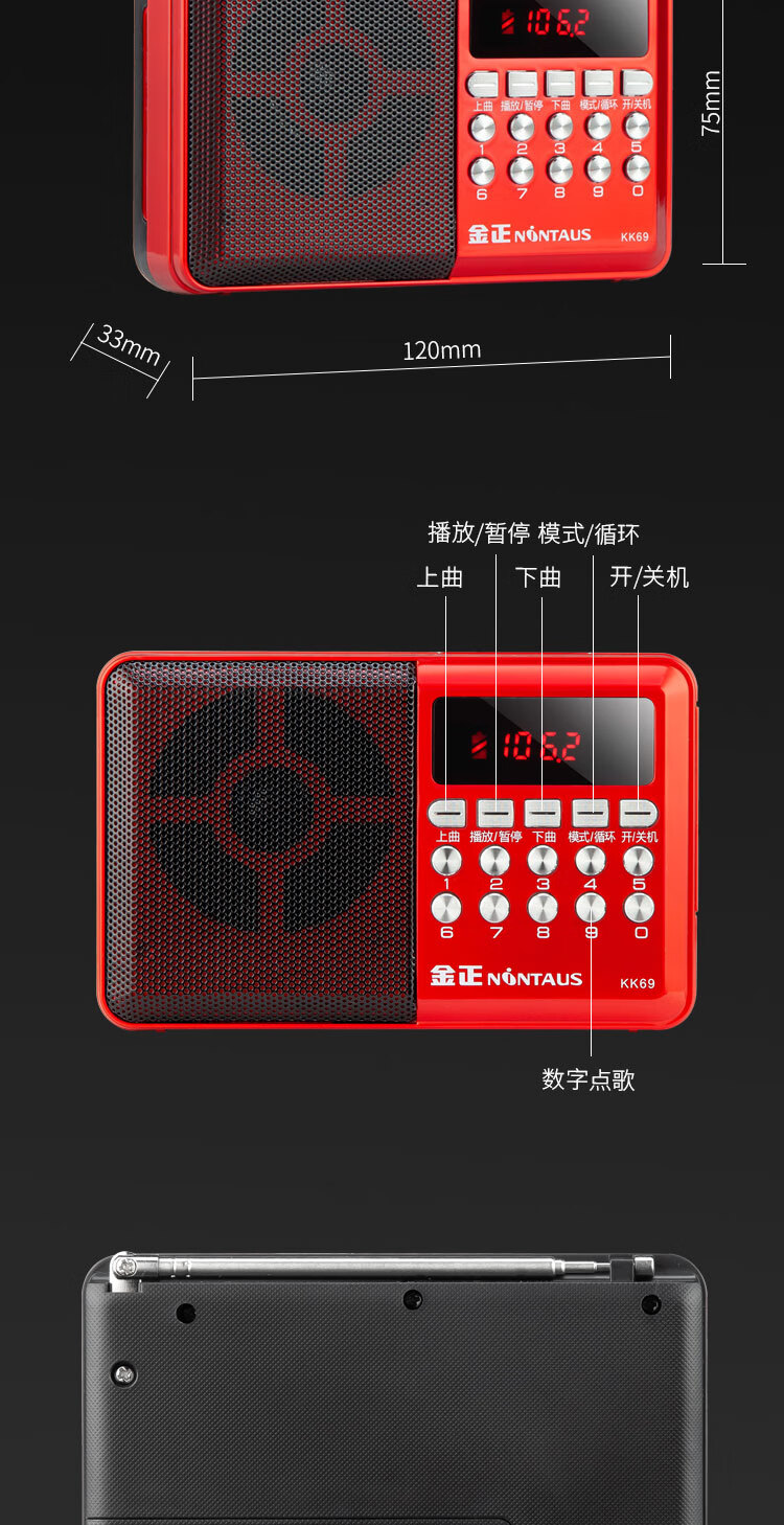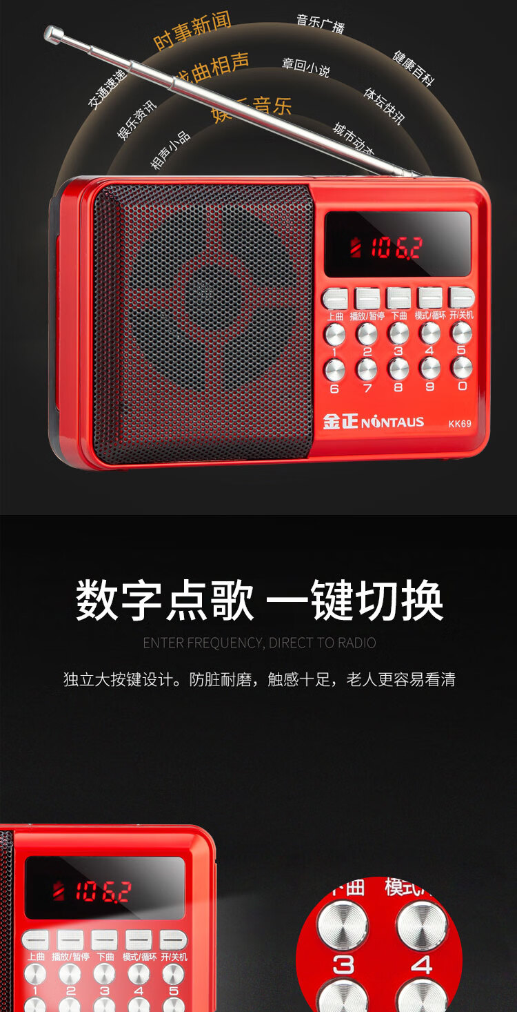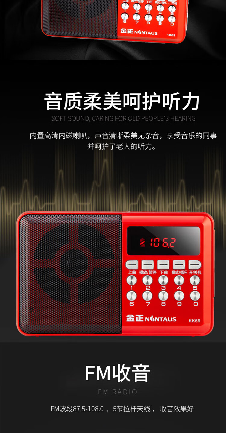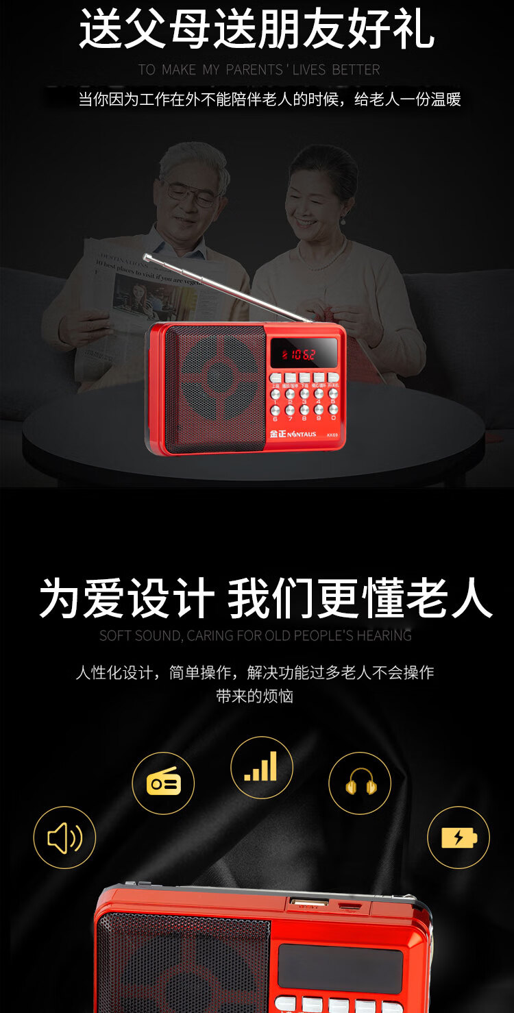 Jinzheng Jinzheng small elderly radio MP3 elderly Bluetooth small audio card portable outdoor player flagship version host + charger classic old songs 45