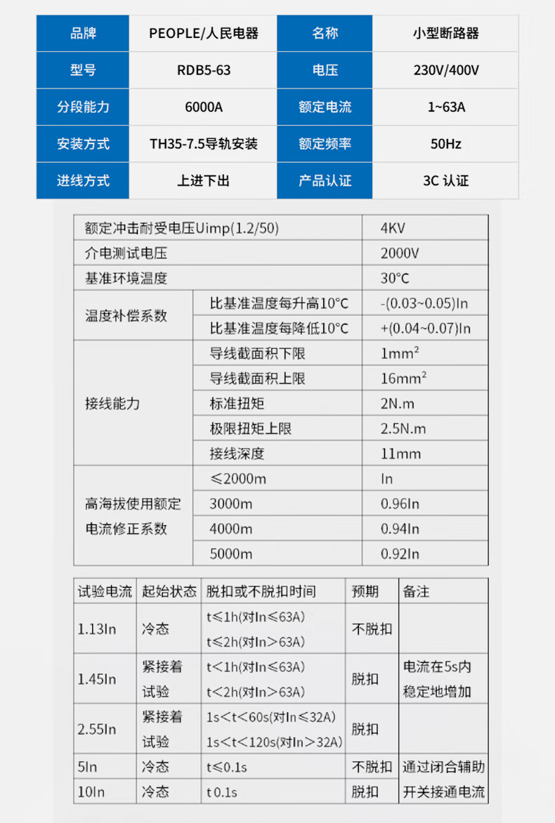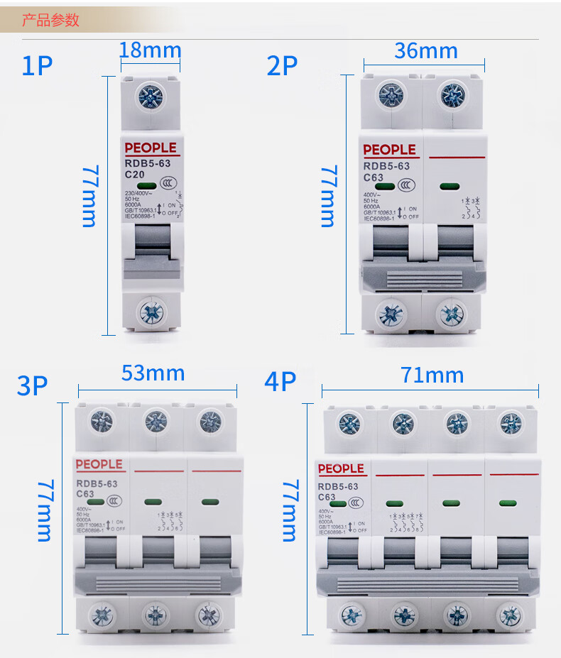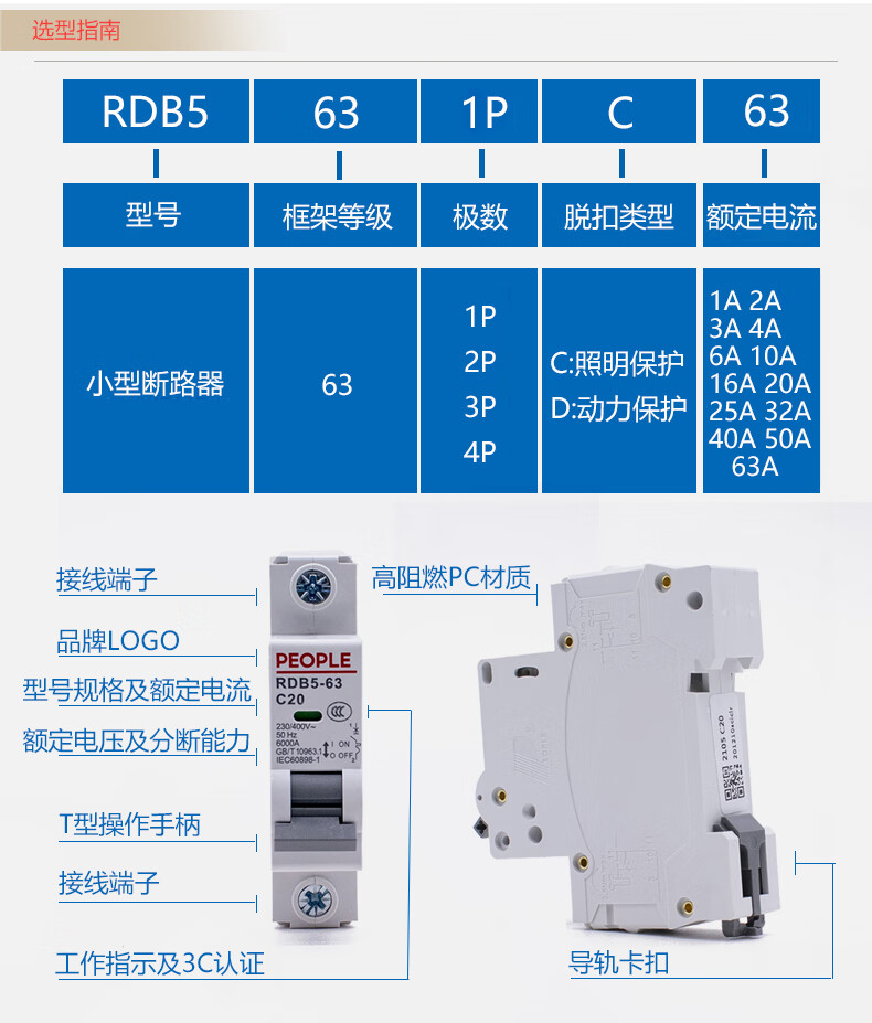 People's Electric RDB5 household small circuit breaker three-phase air switch DZ47 upgraded version 1P 2P 3P 4P RDB5-63 3A 2P x C type