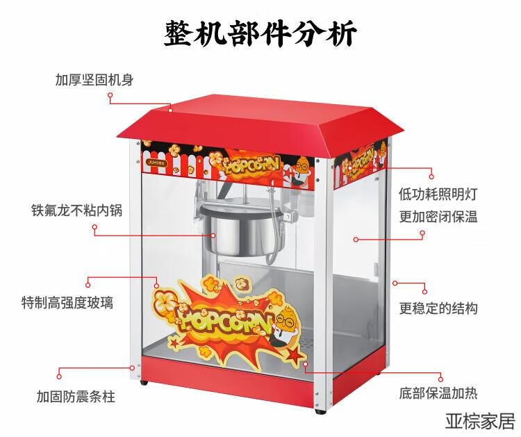 MDNG popcorn machine commercial new stall internet celebrity small electric heated popcorn puffing machine orange rice popcorn machine fully self-made exquisite red flat top model limited edition + 40 bags + 2 original bags