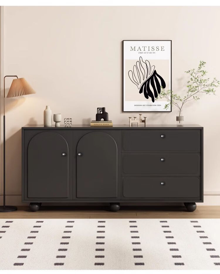 Other solid wood sideboards, light luxury, customizable Nordic style living room, wine cabinet, tea cabinet, multi-functional kitchen storage cabinet, cream white* thickened solid wood board* door-to-door delivery, double door 60CM* European style embossed door