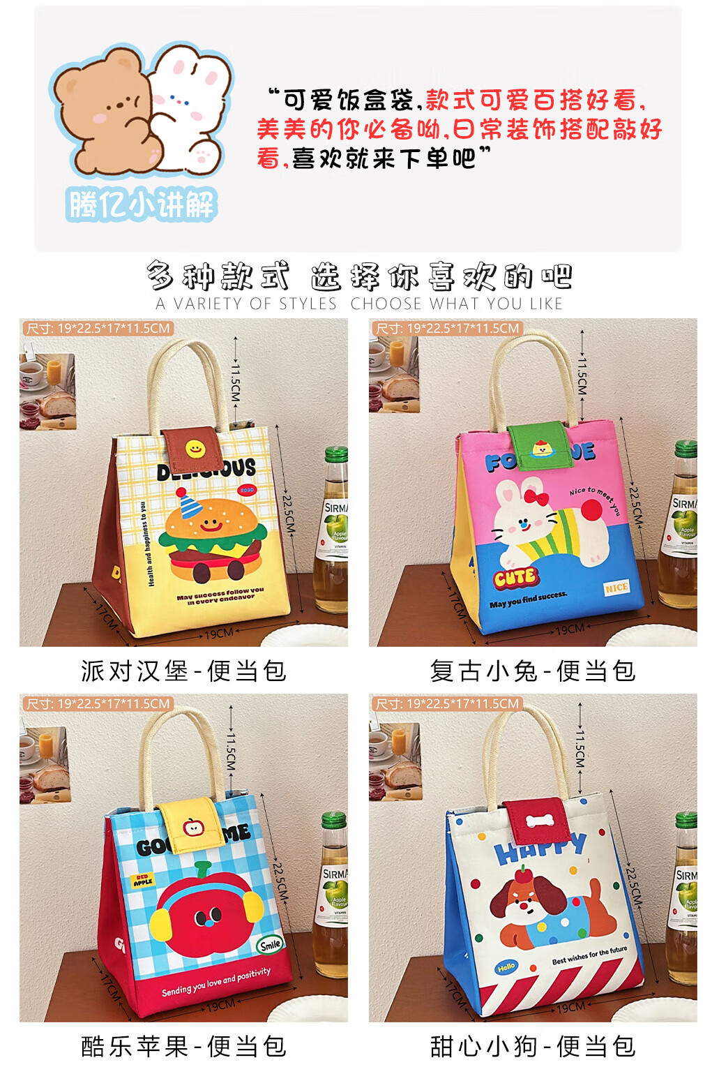 Self-driving car thermal insulation cute lunch bag large capacity handbag cartoon thermal insulation fresh-keeping bag lunch box bag Brave Chongchong-Lunch Bag